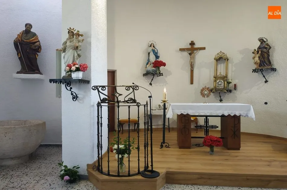 Es evidente que, por la escasez de medios en el momento de la construcción del templo (1970), no se pudieron ejecutar entonces todas las medidas de complemento y adaptación a la normativa de la Iglesia; porque no sólo era cuestión de adorno y estética, sino de exigencia litúrgica. Basta pensar en el detalle de que entonces no fueron recolocados en el nuevo templo todas las efigies e imágenes que la iglesia poseía desde antes, sólo las esenciales, y esto con mucha pena por parte del pueblo que asistía preocupado al deterioro de las mismas y, lo más importante, se veía privado de aquellos referentes de su devoción de toda la vida. Por eso, el sacar ahora al recinto celebrativo todas las imágenes relegadas en la sacristía, ha sido una medida muy bien acogida, puesto que vuelven los santos al lugar que les toca ocupar como modelos e intercesores eficaces de la comunidad cristiana. Mediante una cuidada disposición y sobre repisas de hierro forjado resaltan precisamente la presencia y compañía cercana que tienen a los creyentes, que se reúnen en este lugar para celebrar a Jesucristo.