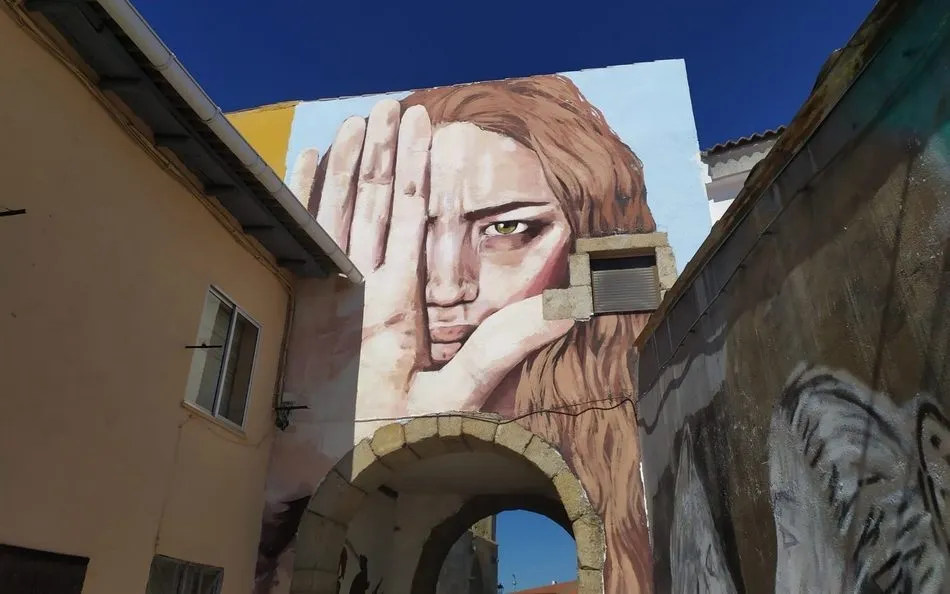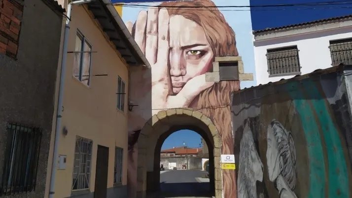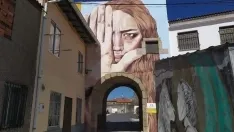 Este mural contra la violencia de género no se incluye en las obras a concurso de esta quinta edición del Certamen de Pintura Mural. El lugar elegido ha sido la pared exterior del arco de la Plaza Mayor de Pereña, junto a la calle que da acceso al camino del Pozo Airón.