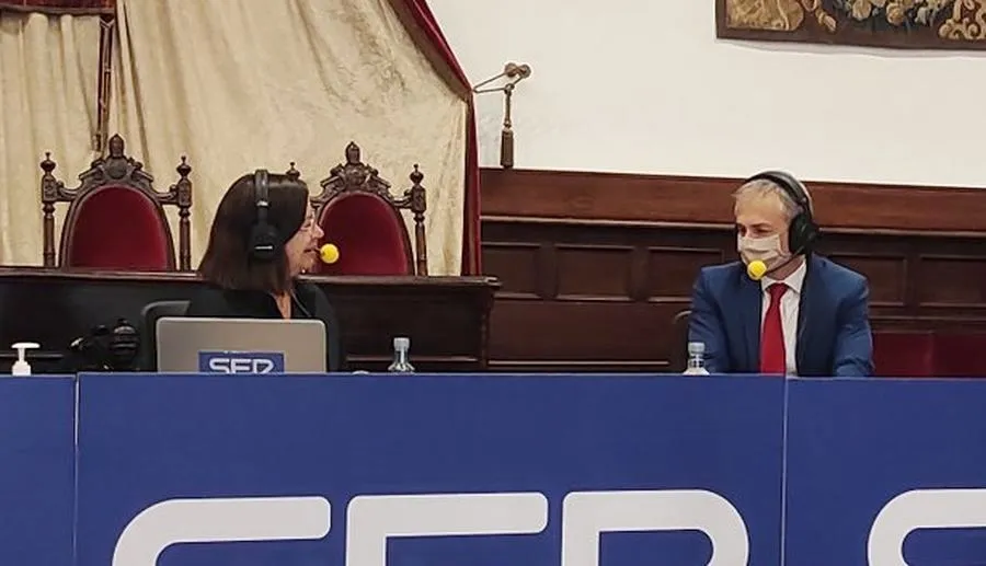El rector de la USAL defiende la formación presencial y elogia a la ciudad en una entrevista en el Paraninfo con Angels Barceló, en la Cadena SER