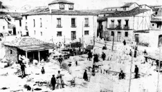 Primera: Construcción de los cimientos de San Juan de Sahagún / Tomada alrededor de 1891 o principios de 1892 / Fotografía: V. Gombau. Col. Familia Vargas y Aguirre.