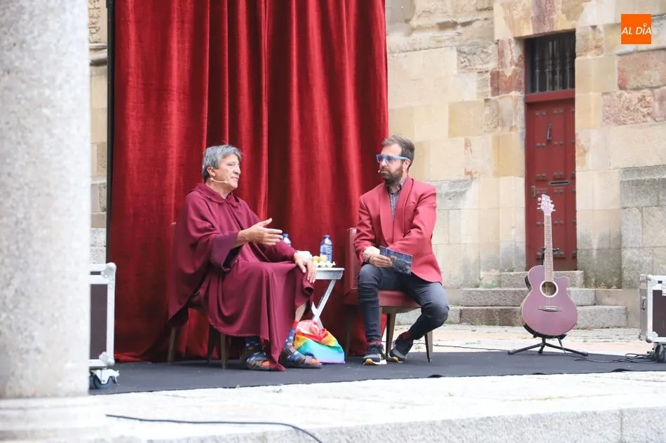 Con las invitaciones agotadas desde hace días, el Patio Chico ha sido el escenario este viernes del espectáculo ?Entrevistas insólitas?, de la mano de Jes Martin?s y Miguel Martín, y dentro de la programación cultural con motivo de la Fiesta de San Juan de Sahagún.