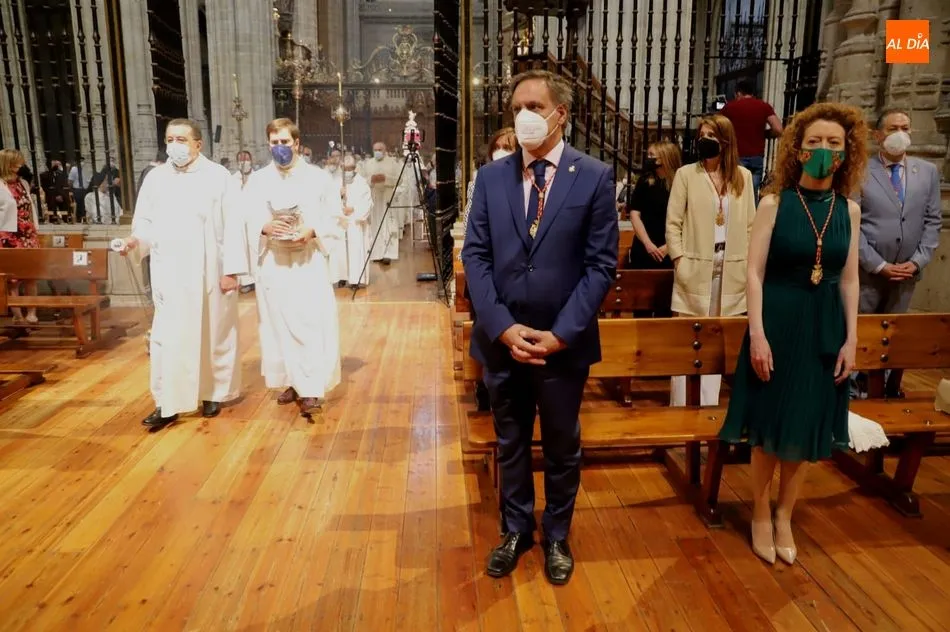 La Catedral Nueva ha acogido este sábado la celebración de la eucaristía con motivo de la festividad de San Juan de Sahagún, patrón de la ciudad, y a la que han acudido, entre otros, el alcalde de Salamanca, Carlos García Carbayo, junto al resto de la Corporación Municipal.