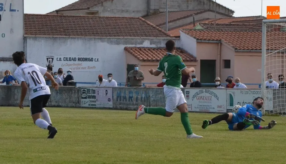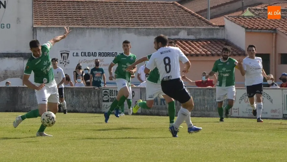 Mientras tanto, el Ciudad Rodrigo apenas había podido pisar el área rival en el 4?, sin llegar a tirar, lo que no hizo hasta que Maza botó en el 13? desde 3/4 de campo una falta que atrapó el guardameta sin problemas. Curiosamente, la primera ocasión clara local acabó dentro. Fue en el 26?, en una jugada iniciada con un córner a favor del San José (con dos tiros que se bloquearon), tras lo cual se generó una contra en cuyo tramo final Santi le puso un gran balón a Alberto Martín, quién entrando en el área definió por bajo frente al guardameta.
