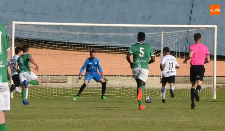 El Ciudad Rodrigo se mete en las finales por el ascenso con cierto sufrimiento al no sentenciar... | Imagen 3En los minutos siguientes, Javi Moríñigo firmó un tiro a pase de Alberto Martín desde el pico izquierdo del área que se acabó por ir rozando el palo derecho; un disparo de Alberto García a media vuelta desde la media luna del área se fue a centímetros de la cepa del poste derecho; y en el 45?, Alberto García se plantó en el área con claridad, pero no pudo sacar un tiro. Entre medias, el San José de Soria lo probó un par de veces, respondiendo bien Pepo. Por lo tanto, el partido se fue al descanso con un 1-0 que era corto vistas las ocasiones de ambos equipos.