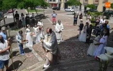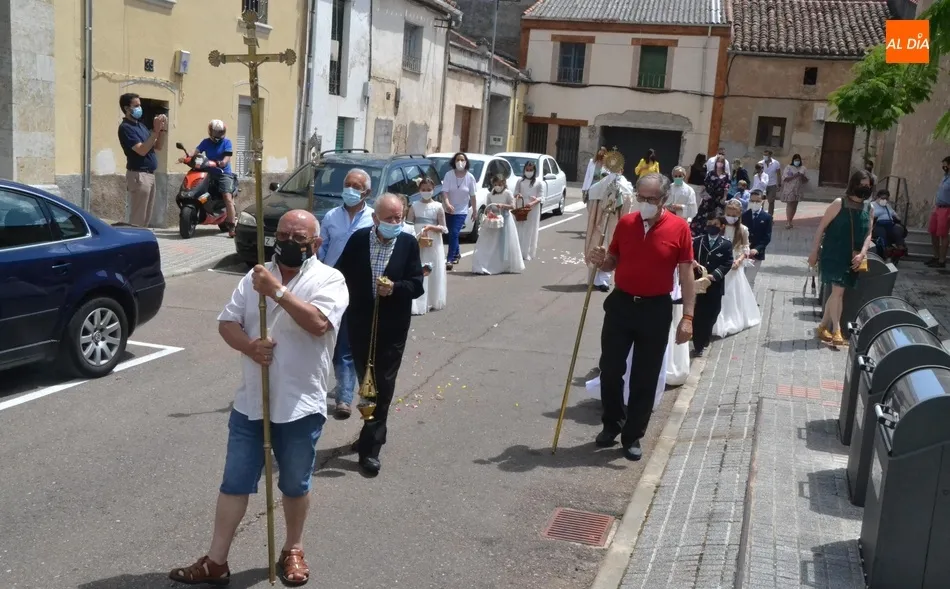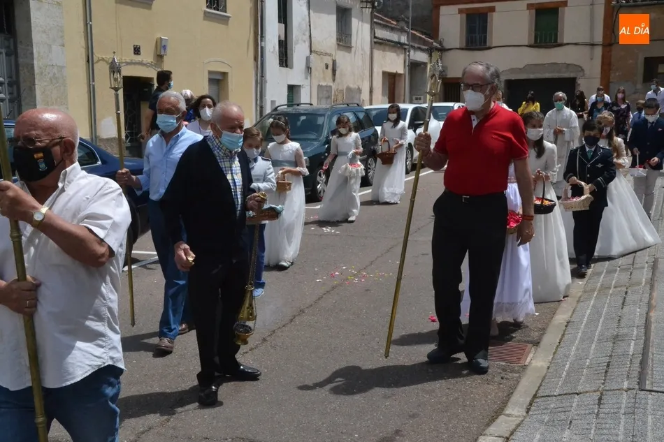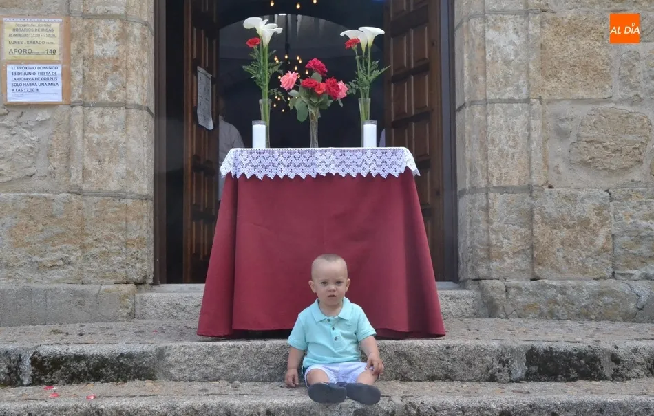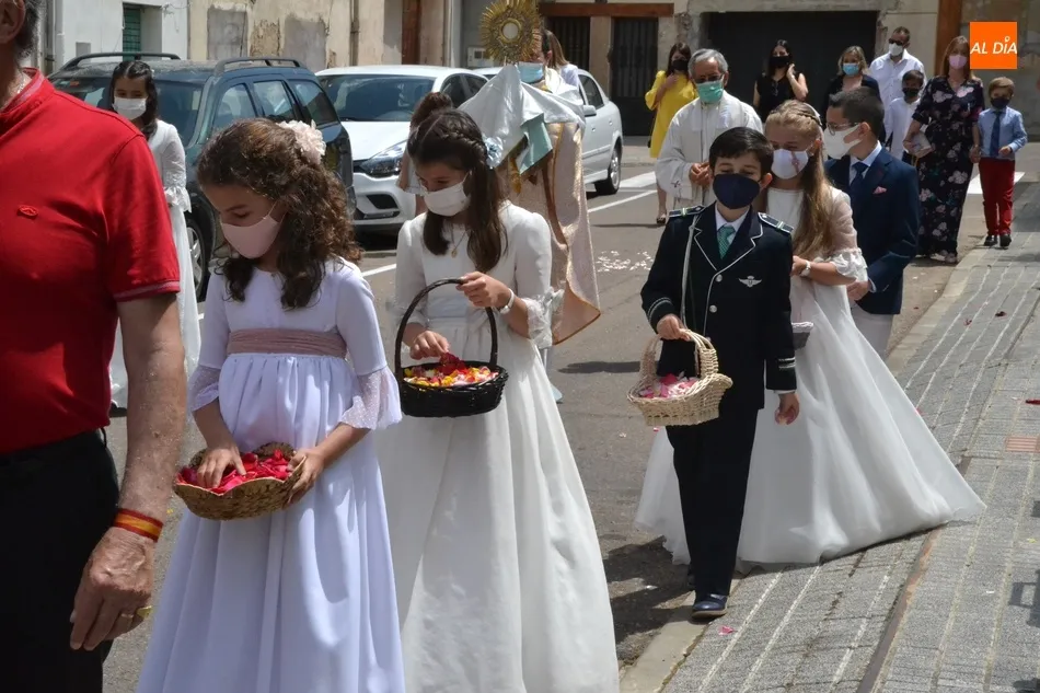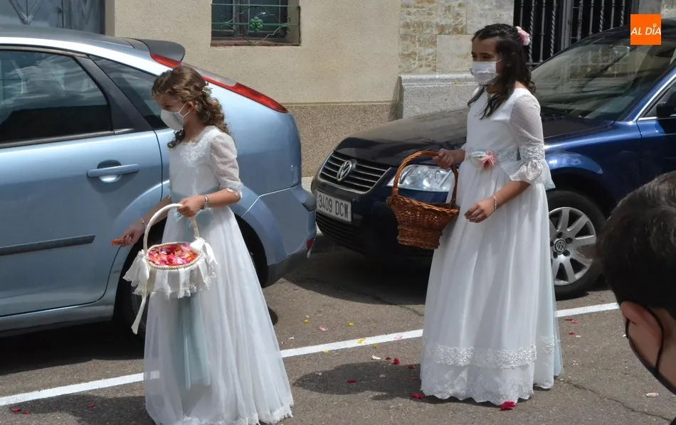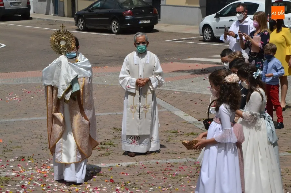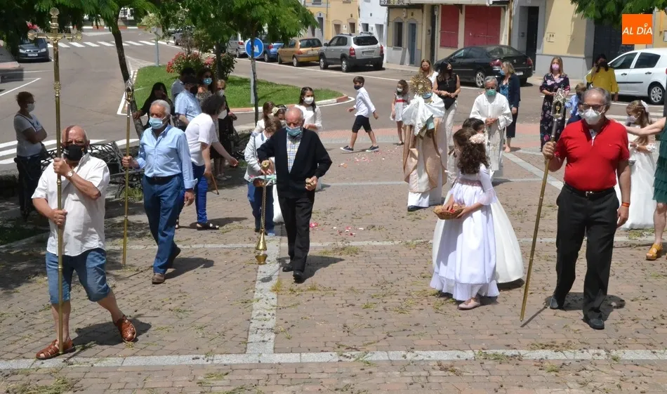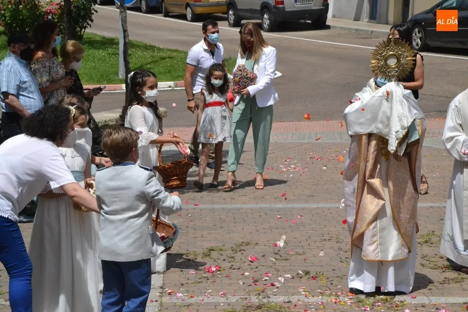 Como marca la tradición en Ciudad Rodrigo, la Parroquia de San Cristóbal celebró en la mañana del domingo la festividad del Corpus Christi una semana después de que tuviera lugar la celebración principal en el centro histórico mirobrigense, que este año se limitó por culpa de la pandemia del coronavirus a una solemne eucaristía en la Catedral de Santa María presidida por el Administrador Apostólico de la Diócesis Civitatense, Jesús García Burillo.