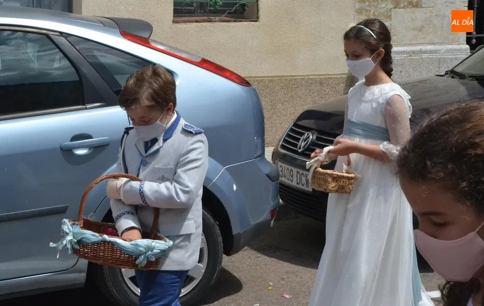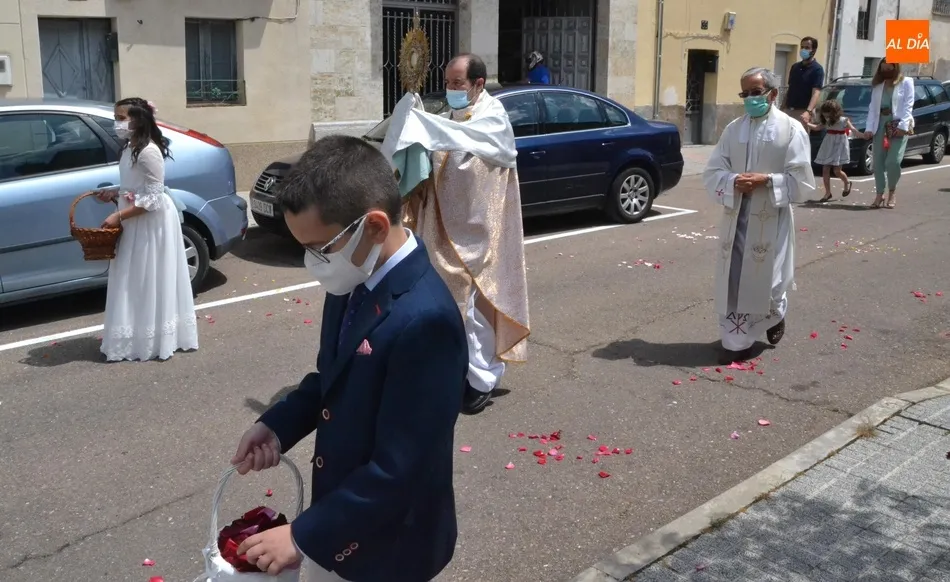 En ese breve recorrido los grandes protagonistas fueron nueve de los niños que han recibido este año la Primera Comunión en San Cristóbal (faltaron algunos), que se volvieron a poner sus trajes y vestidos para acompañar al Santísimo, a quienes arrojaron pétalos durante el trayecto. Esta breve procesión únicamente fue contemplada por los familiares de los niños de Comunión, debiendo esperar el resto de fieles en el interior del templo a que regresase el Santísimo, para evitar cualquier riesgo epidémico.