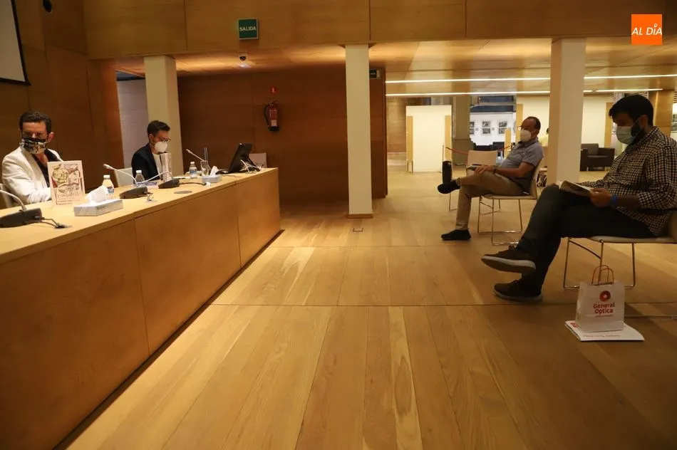 El autor ha estado acompañado de la presidenta de la asociación Salamanca Memoria y Justicia y del director del Centro Documental de la Memoria Histórica