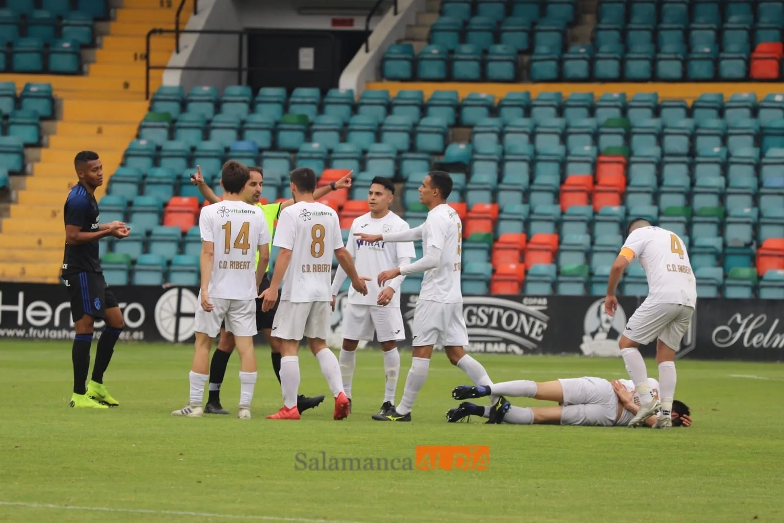 El defensa Daniel Alderete fue el que marcó para el equipo charro, lo que provocó el delirio entre el resto de sus compañeros al dar un paso de gigante hacia el salto de categoría desde la Regional de Aficionados. Sin embargo, su diana no fue suficiente para lograr el triunfo y ya solo quedan 90 minutos para saber qué ocurrirá con el Ribert.