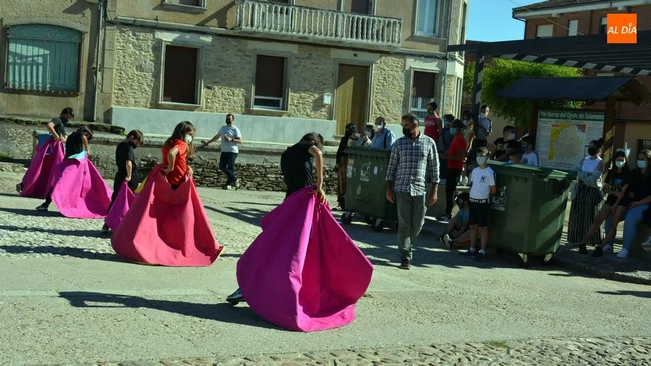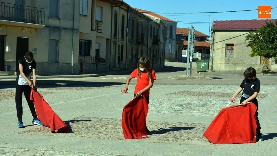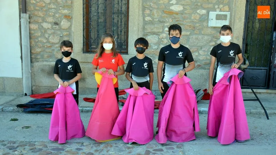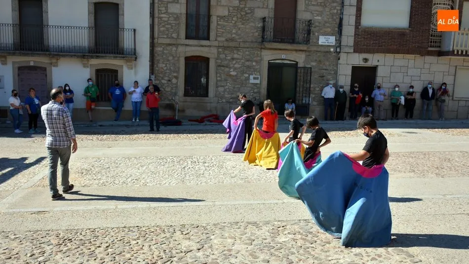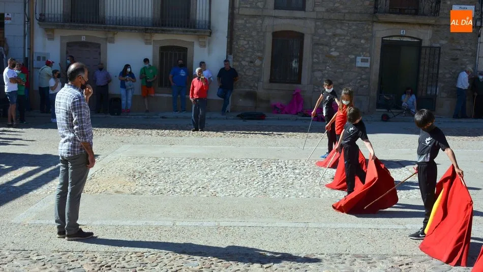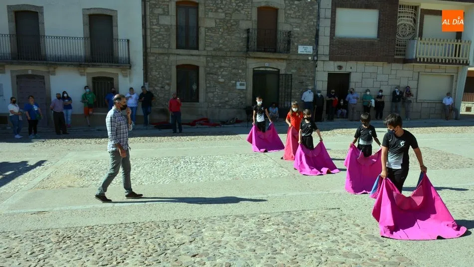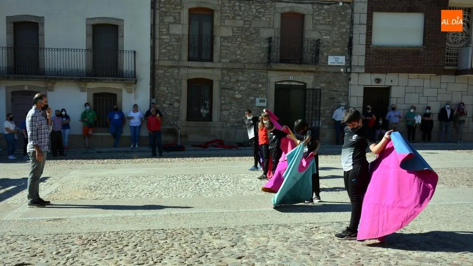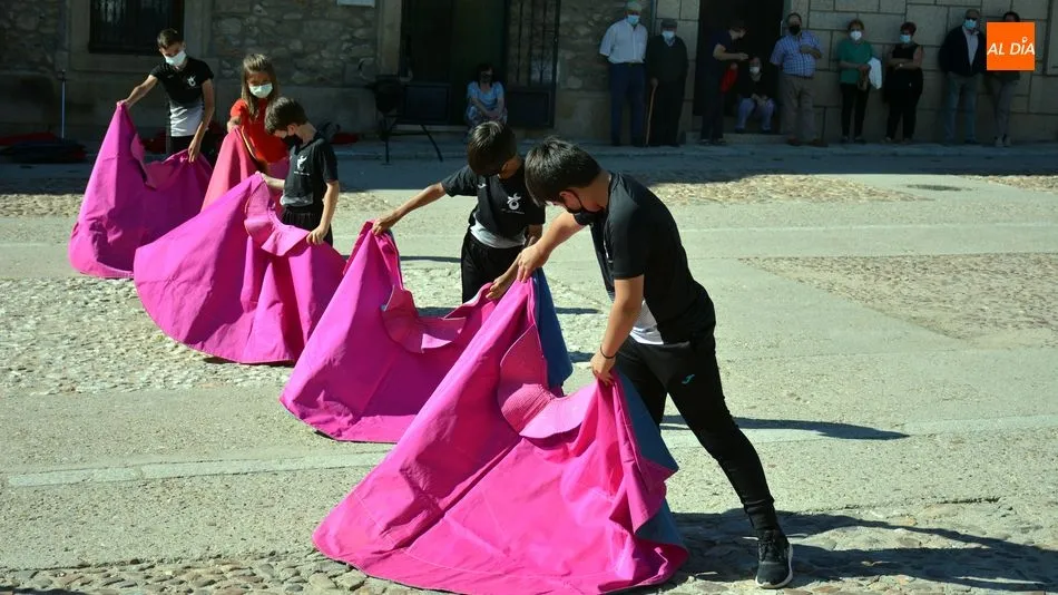 Así hoy, ?Día de las Cabestras? se celebran actos relacionados con el mundo taurino y con las actuaciones musicales al aire libre. Esta tarde, la Plaza del Juego de Pelota ha acogido una Clase de toreo de salón a cargo de la Escuela de Tauromaquia de Salamanca. Dirigidos por el profesor José Ramón Martín, cinco niños, de entre 10 y 13 años, ofrecieron una exhibición de toreo de salón, en la que mostraron su destreza con el capote y la muleta. La música animó la sesión de pases de las diversas suerte del toreo, que fue seguida con interés por el público, de todas las edades, que acudieron a la Plaza del juego de pelota. Estas exhibiciones de toreo de salón son una actividad teórica-practica para los alumnos de la escuela salmantina, que acaba de empezar con ilusión y esperanza la temporada de festejos de verano por toda la provincia, una temporada que estará marcada por las restricciones post-Covid-19.