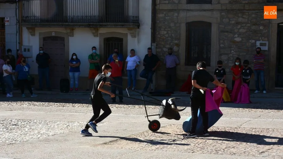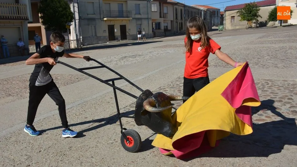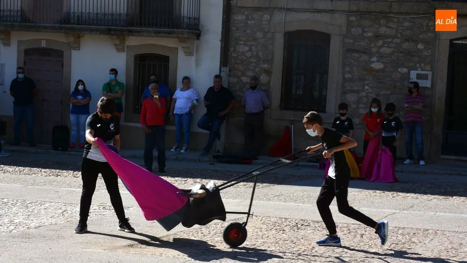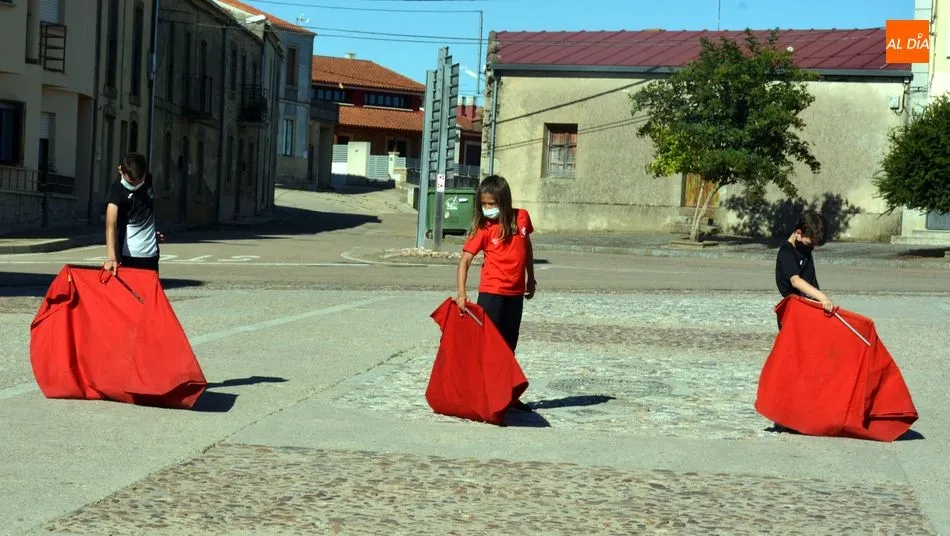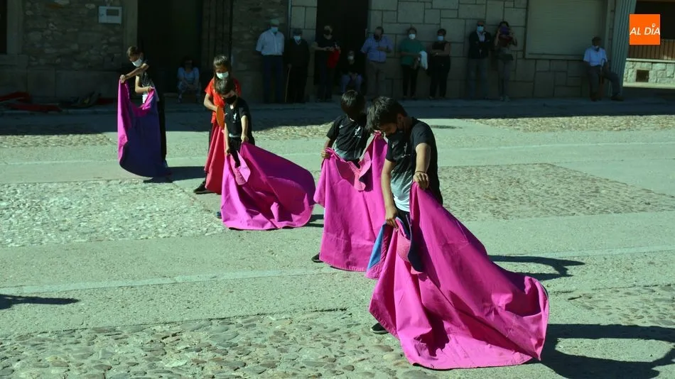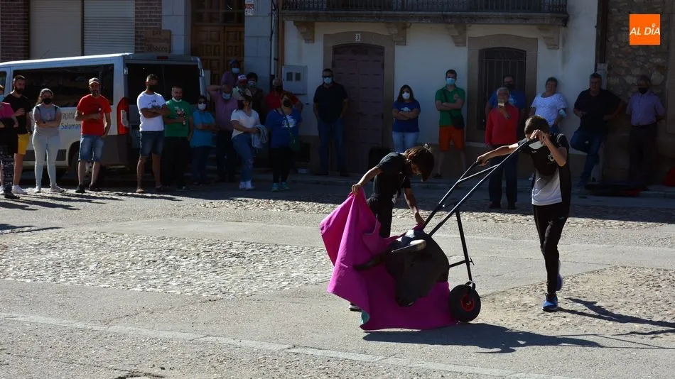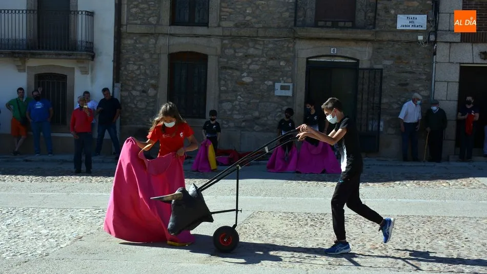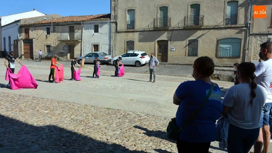 Así hoy, ?Día de las Cabestras? se celebran actos relacionados con el mundo taurino y con las actuaciones musicales al aire libre. Esta tarde, la Plaza del Juego de Pelota ha acogido una Clase de toreo de salón a cargo de la Escuela de Tauromaquia de Salamanca. Dirigidos por el profesor José Ramón Martín, cinco niños, de entre 10 y 13 años, ofrecieron una exhibición de toreo de salón, en la que mostraron su destreza con el capote y la muleta. La música animó la sesión de pases de las diversas suerte del toreo, que fue seguida con interés por el público, de todas las edades, que acudieron a la Plaza del juego de pelota. Estas exhibiciones de toreo de salón son una actividad teórica-practica para los alumnos de la escuela salmantina, que acaba de empezar con ilusión y esperanza la temporada de festejos de verano por toda la provincia, una temporada que estará marcada por las restricciones post-Covid-19.