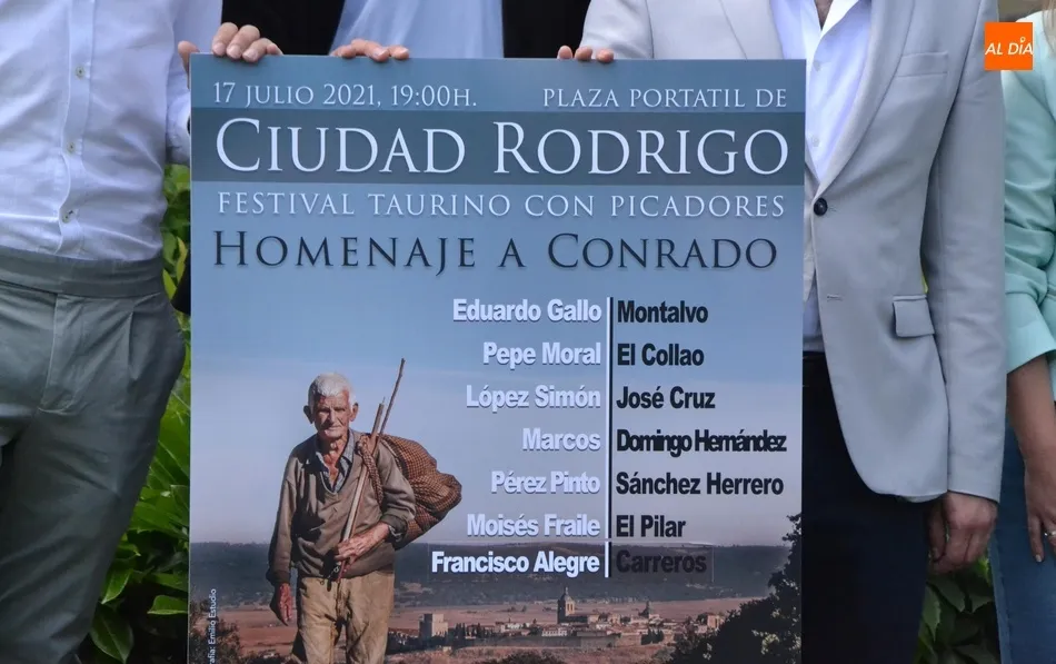 El Ayuntamiento se mostró favorable y así ha salido adelante este Festival Taurino con Picadores de homenaje a Conrado, que cuenta en su cartel con siete protagonistas, cada uno de los cuales se medirá a un astado de una ganadería diferente: Eduardo Gallo lo hará con uno de Montalvo, Pepe Moral a uno de El Collao, López Simón a uno de José Cruz, Marcos a uno de Domingo Hernández, Pérez Pinto a uno de Sánchez Herrero, el ganadero Moisés Fraile a uno de su propia ganadería de El Pilar, y Francisco Alegre a un astado de Carreros, todo ello con el objetivo de que ?Conrado disfrute y se lo pase bien?, en palabras de Juanjo Carruelas.