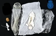 En el dispositivo establecido se localizó el vehículo que procedía de Salamanca. En el registro, los agentes encontraron 27 gramos de cocaína en un envoltorio de papel blanco que llevaban dentro de un goma de plástico y látex, medio gramo de cocaína en un envoltorio de plástico y un trozo de hachís, 4 gramos. Todo ello escondido entre sus prendas de ropa.