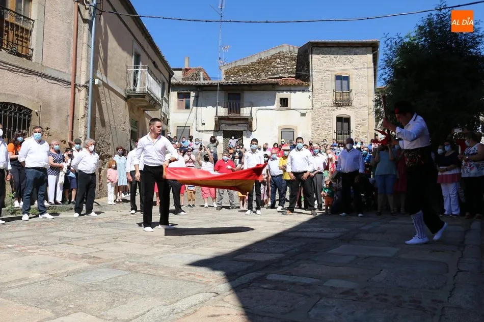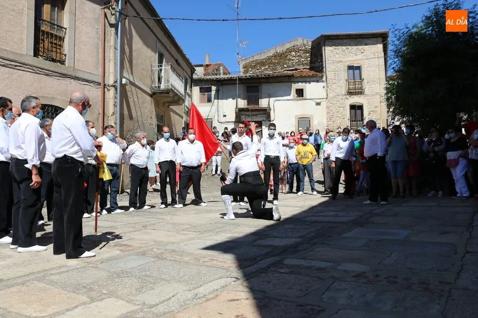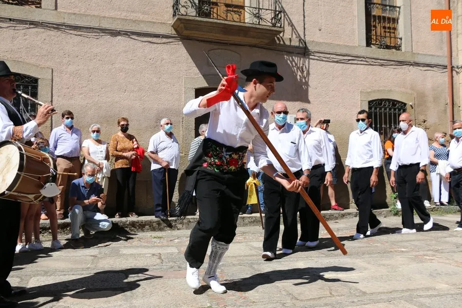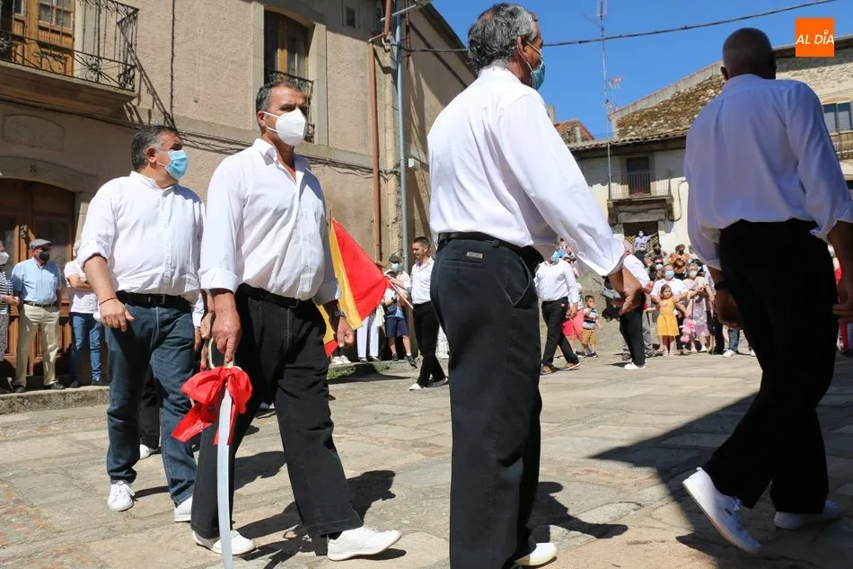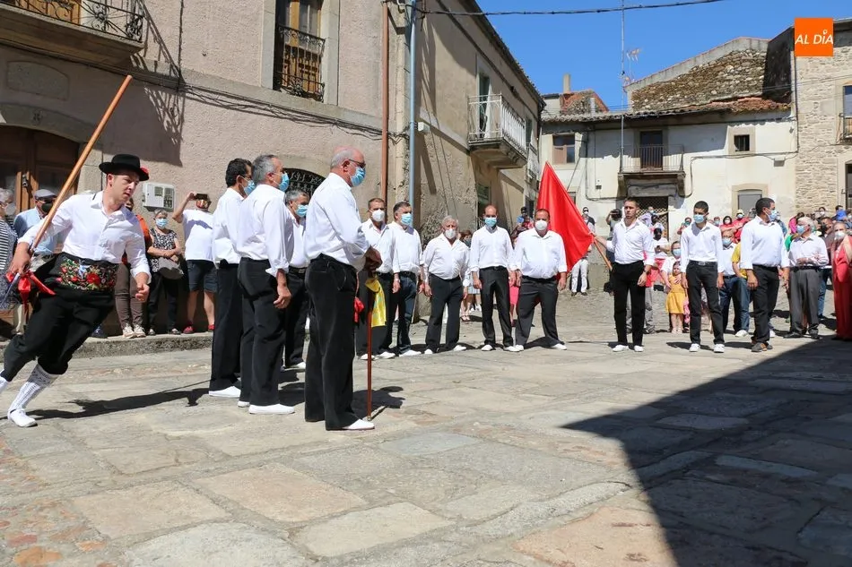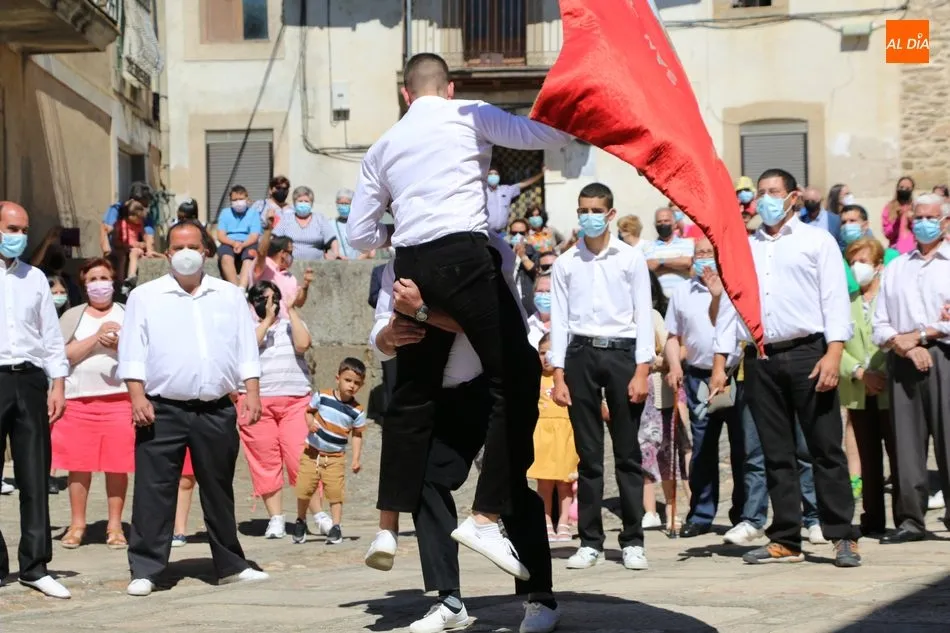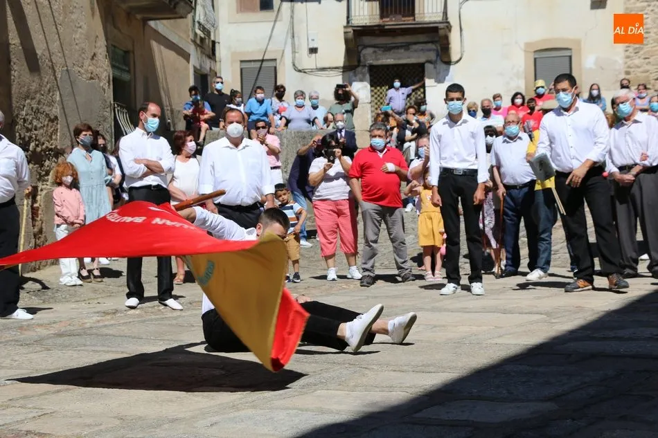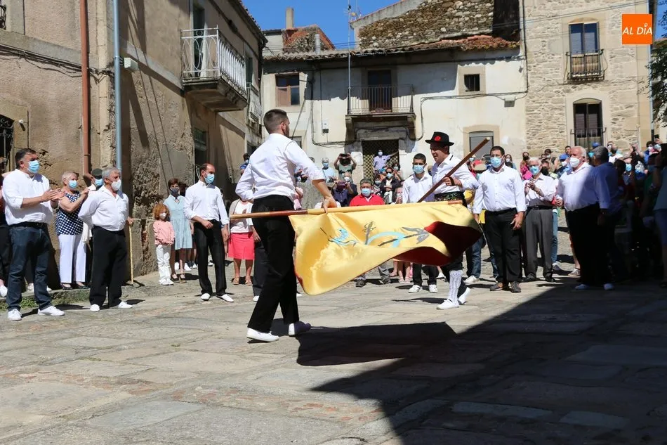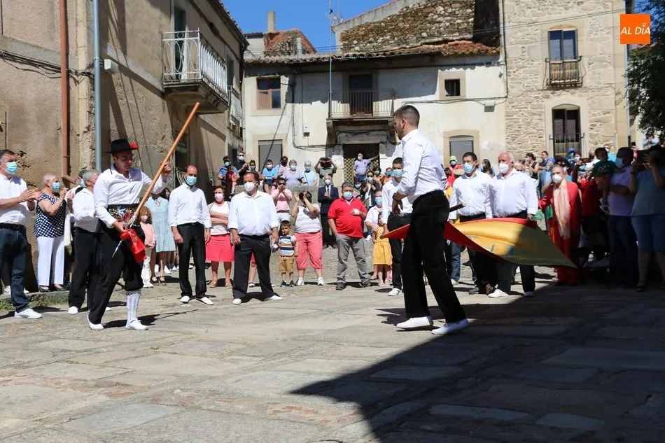 Con José Manuel Bartol a los mandos de la gaita y el tamboril, el público congregado a las puertas del templo, una vez finalizada la misa, vibró con el baile realizado por ambos mozos, interpretando así la leyenda que cuenta la victoria de la villa de Hinojosa sobre el feudal un día del mes de febrero de 1441. De aquel acontecimiento, que enfrentó a los señores de estas tierras contra el obispo de Ciudad Rodrigo, la tradición oral se ha encargado de mitificarlo hasta convertirlo en el mayor símbolo de los hinojoseros: la victoria del pueblo (la bandera) frente el poder del feudal (alabarda), personajes ambos representados en esta tradicional danza que se baila cada 24 de junio.