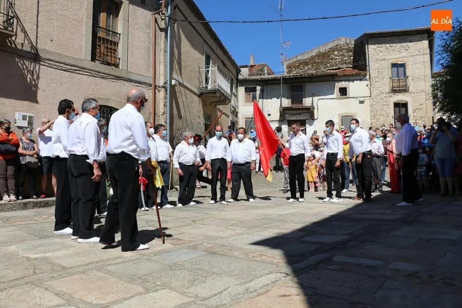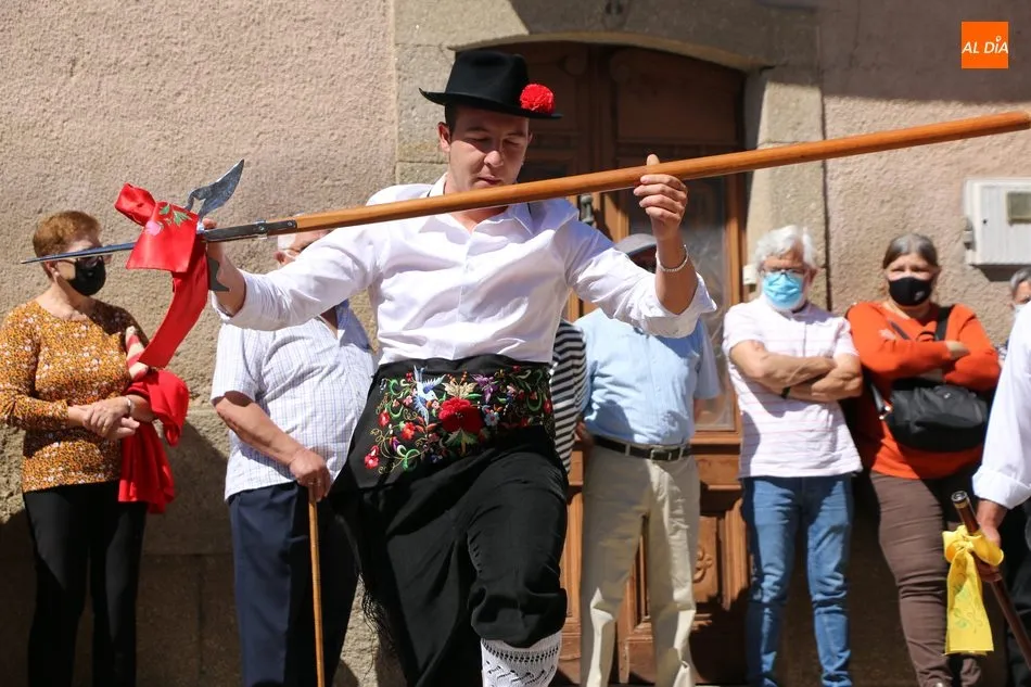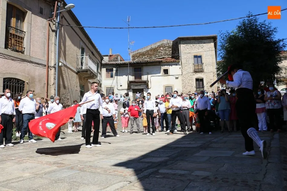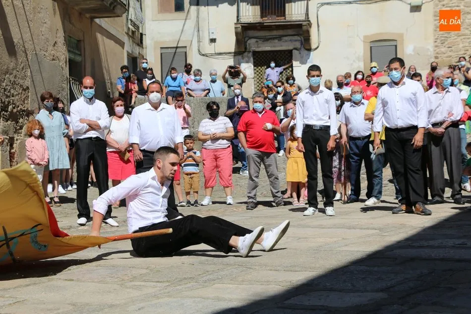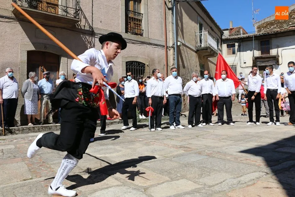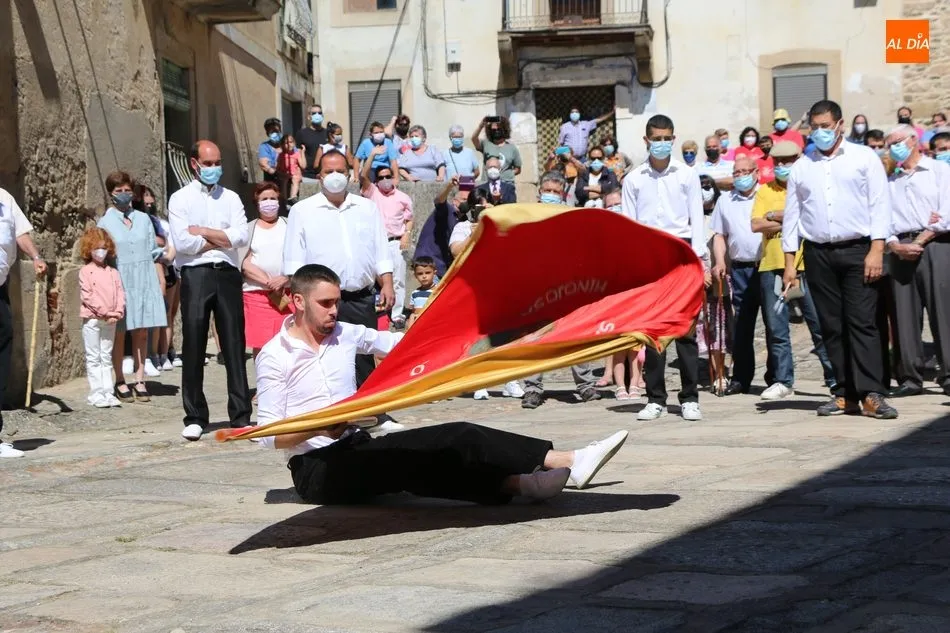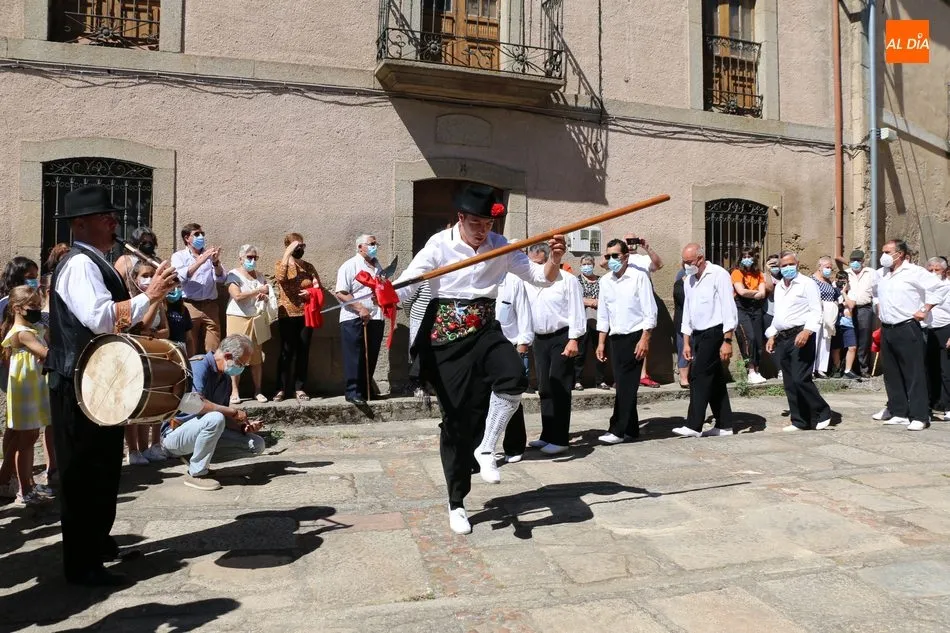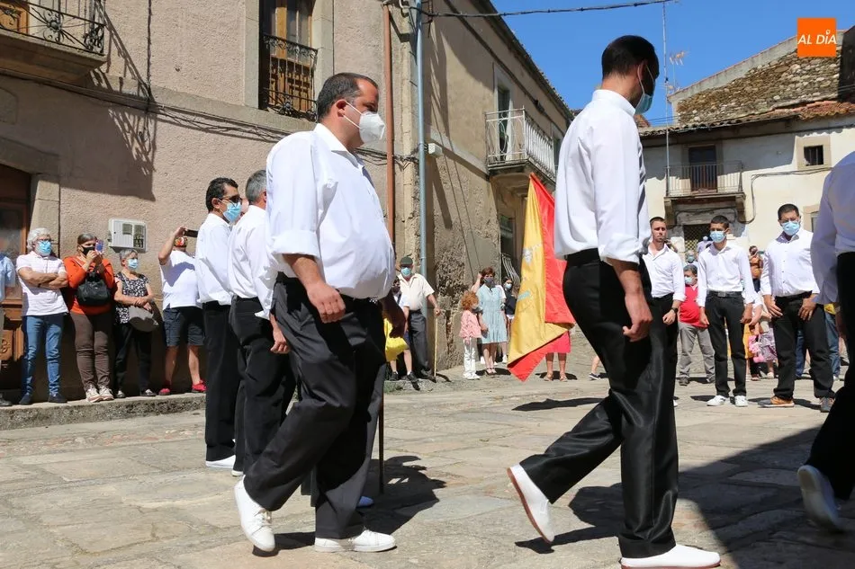 Con José Manuel Bartol a los mandos de la gaita y el tamboril, el público congregado a las puertas del templo, una vez finalizada la misa, vibró con el baile realizado por ambos mozos, interpretando así la leyenda que cuenta la victoria de la villa de Hinojosa sobre el feudal un día del mes de febrero de 1441. De aquel acontecimiento, que enfrentó a los señores de estas tierras contra el obispo de Ciudad Rodrigo, la tradición oral se ha encargado de mitificarlo hasta convertirlo en el mayor símbolo de los hinojoseros: la victoria del pueblo (la bandera) frente el poder del feudal (alabarda), personajes ambos representados en esta tradicional danza que se baila cada 24 de junio.