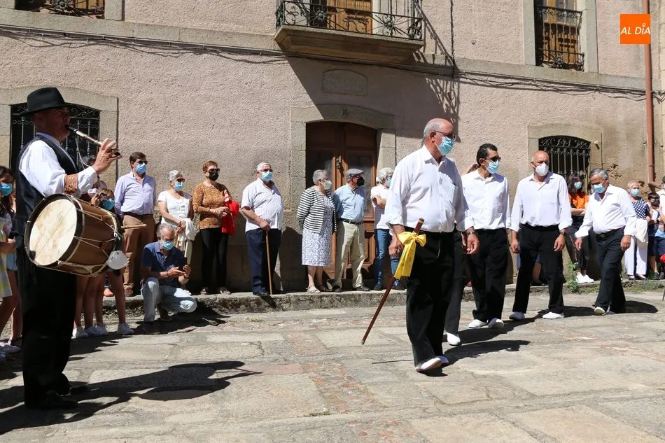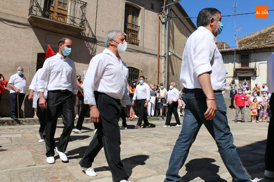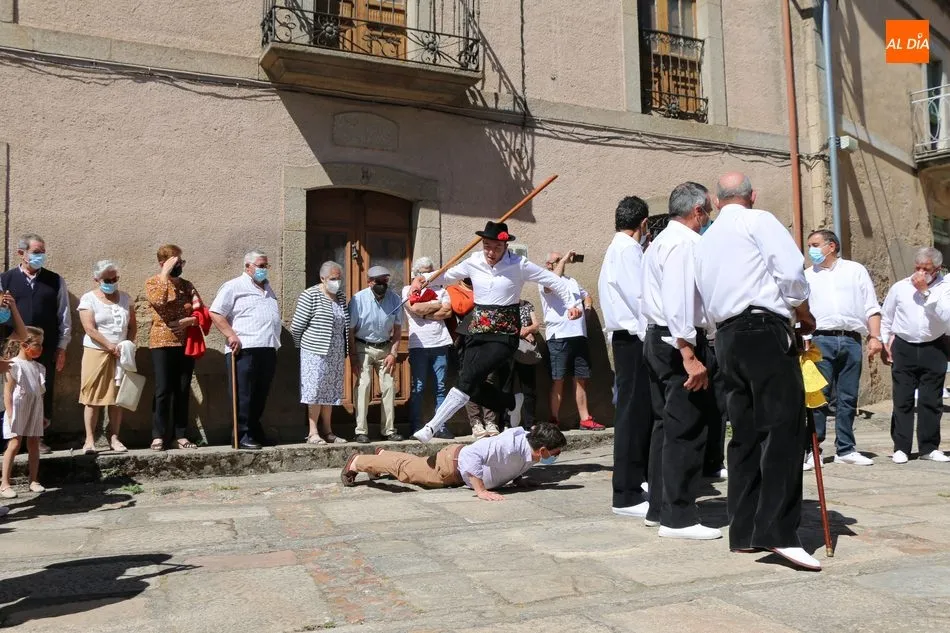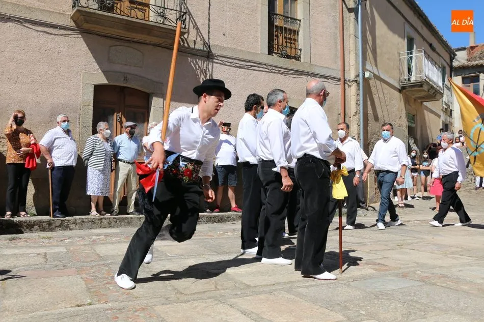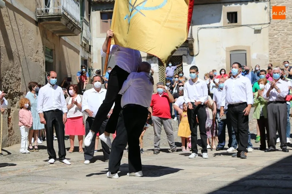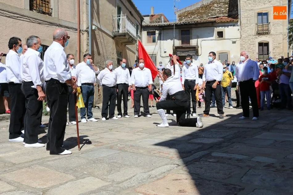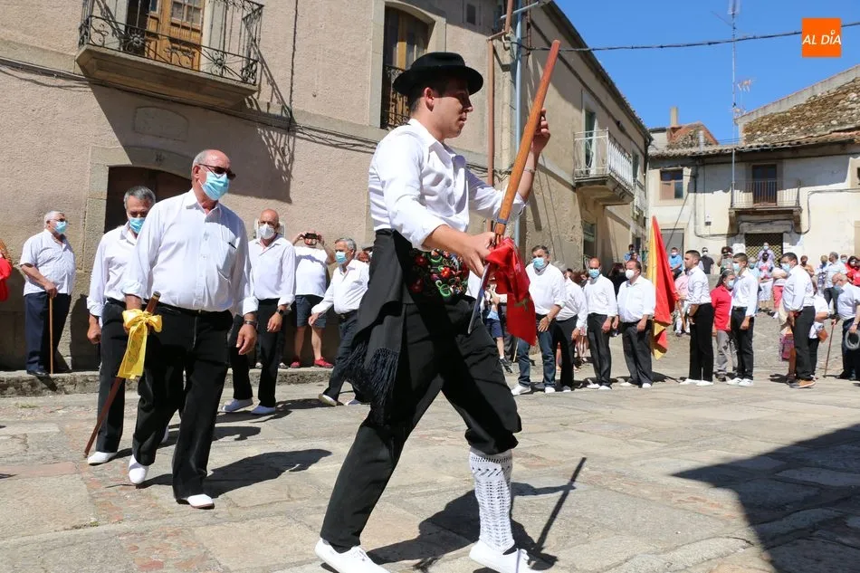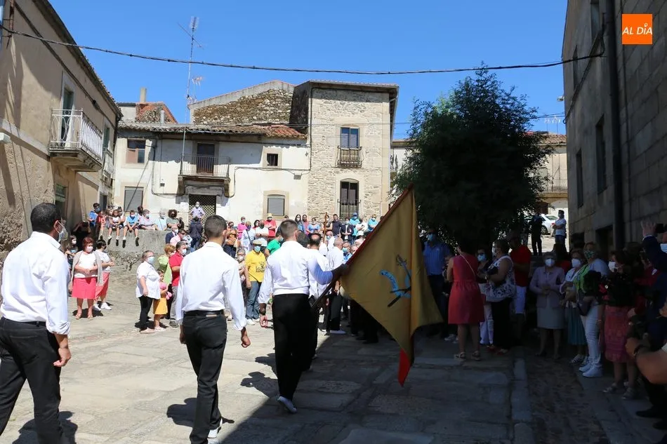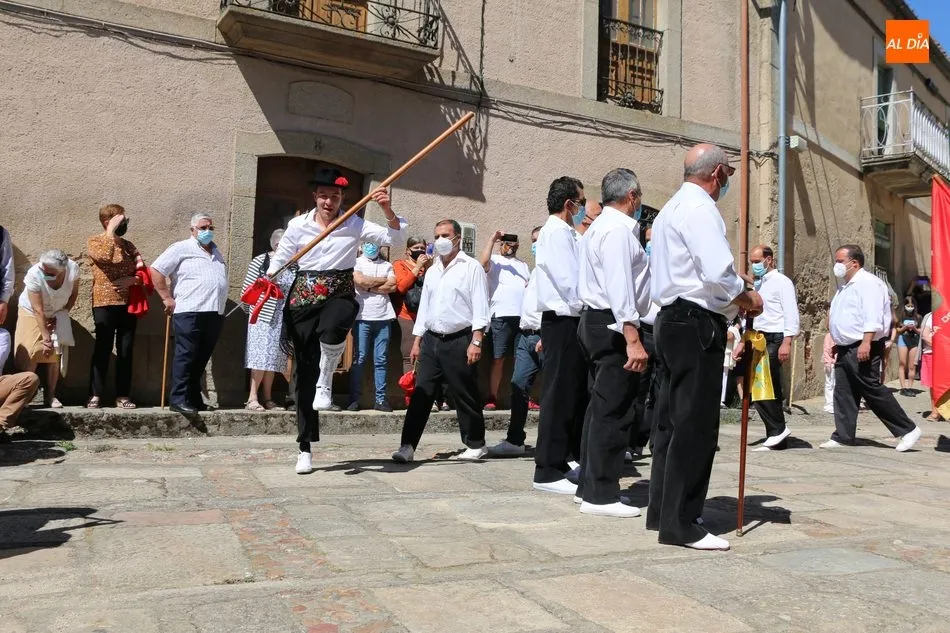 Con José Manuel Bartol a los mandos de la gaita y el tamboril, el público congregado a las puertas del templo, una vez finalizada la misa, vibró con el baile realizado por ambos mozos, interpretando así la leyenda que cuenta la victoria de la villa de Hinojosa sobre el feudal un día del mes de febrero de 1441. De aquel acontecimiento, que enfrentó a los señores de estas tierras contra el obispo de Ciudad Rodrigo, la tradición oral se ha encargado de mitificarlo hasta convertirlo en el mayor símbolo de los hinojoseros: la victoria del pueblo (la bandera) frente el poder del feudal (alabarda), personajes ambos representados en esta tradicional danza que se baila cada 24 de junio.