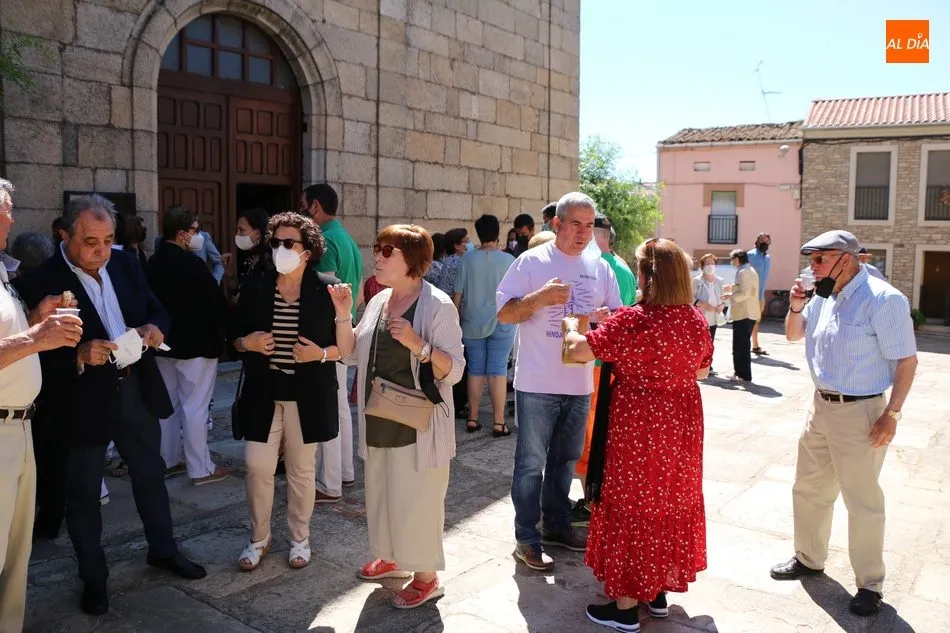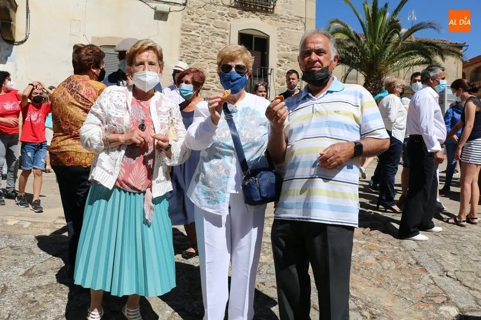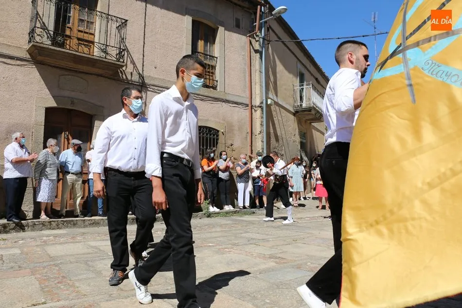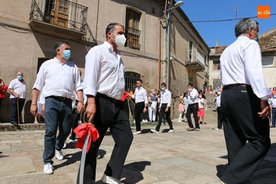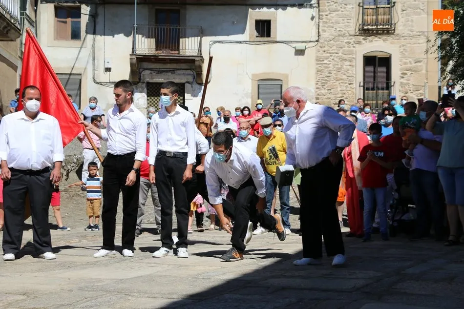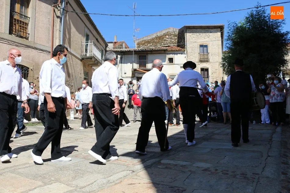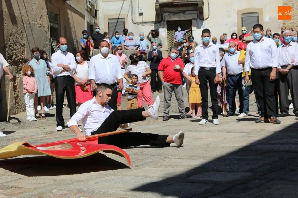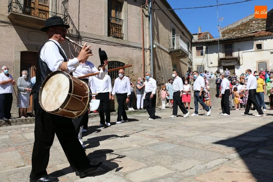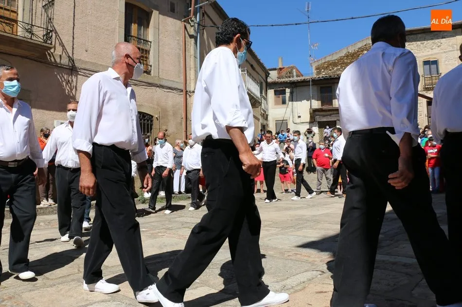 Con José Manuel Bartol a los mandos de la gaita y el tamboril, el público congregado a las puertas del templo, una vez finalizada la misa, vibró con el baile realizado por ambos mozos, interpretando así la leyenda que cuenta la victoria de la villa de Hinojosa sobre el feudal un día del mes de febrero de 1441. De aquel acontecimiento, que enfrentó a los señores de estas tierras contra el obispo de Ciudad Rodrigo, la tradición oral se ha encargado de mitificarlo hasta convertirlo en el mayor símbolo de los hinojoseros: la victoria del pueblo (la bandera) frente el poder del feudal (alabarda), personajes ambos representados en esta tradicional danza que se baila cada 24 de junio.