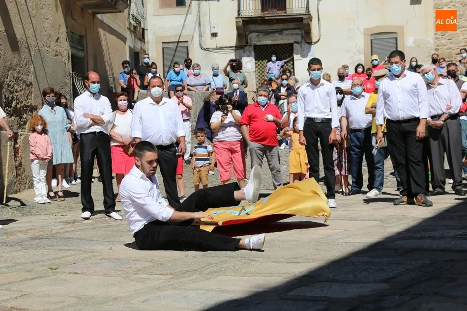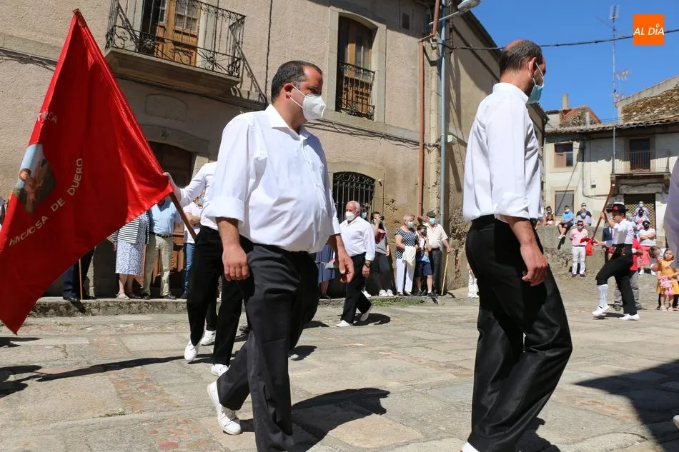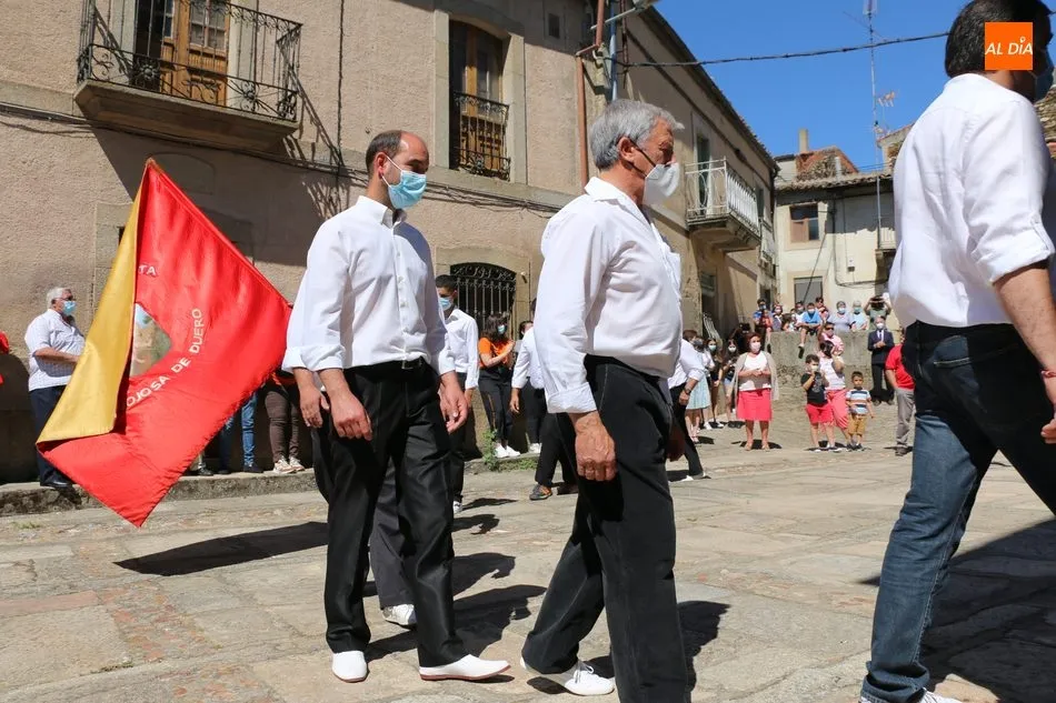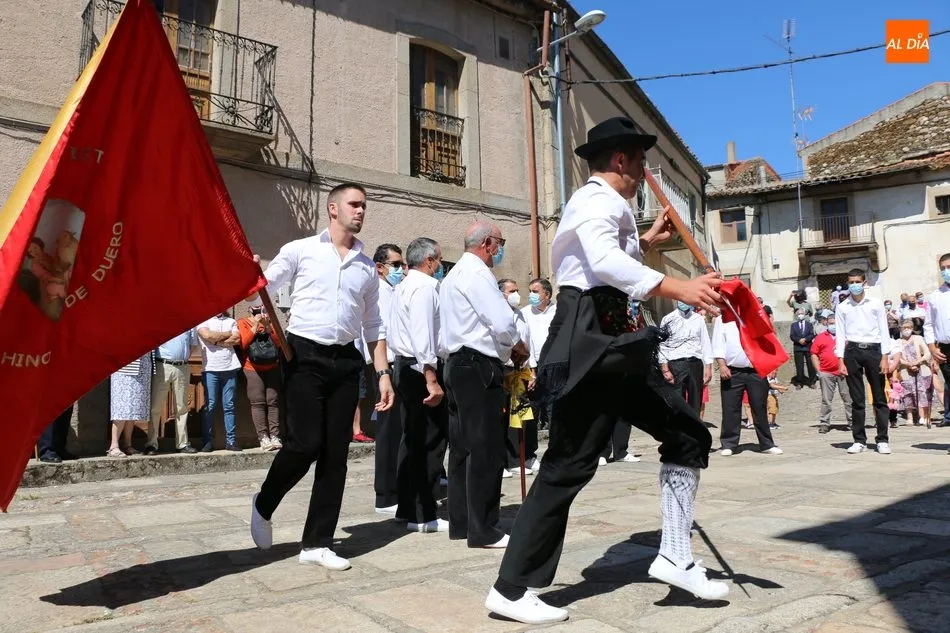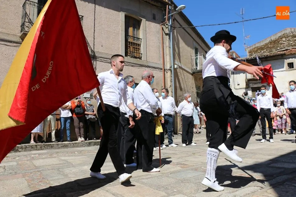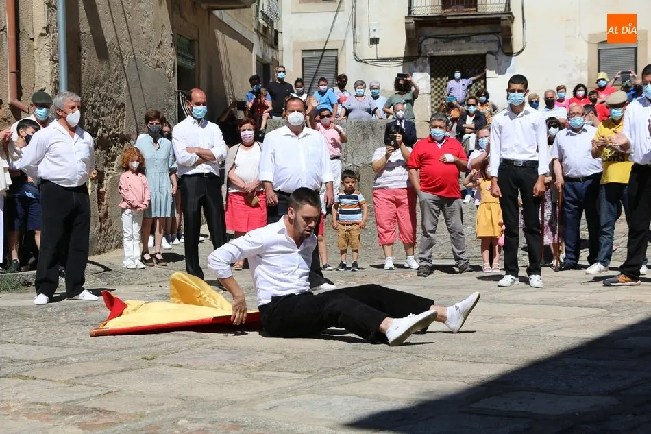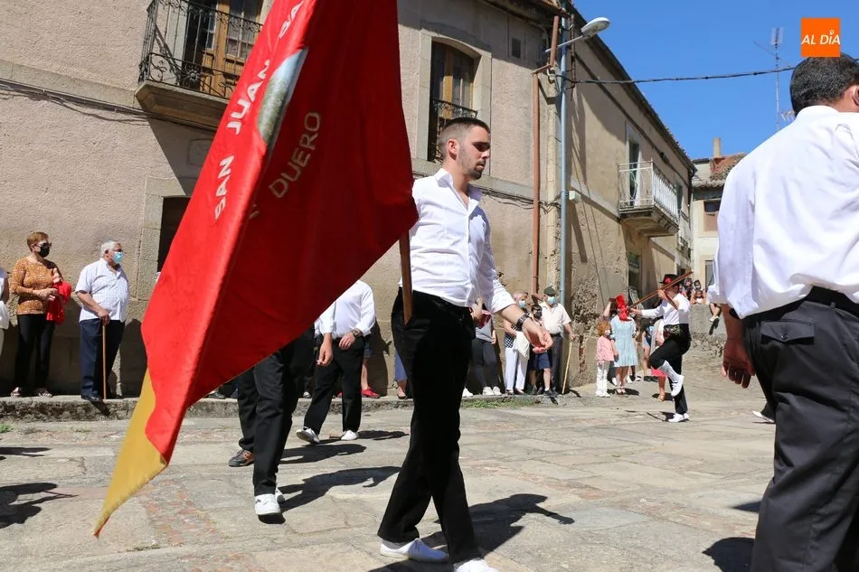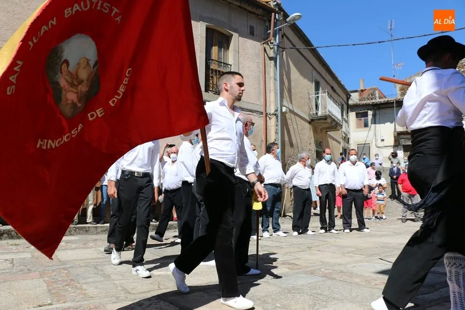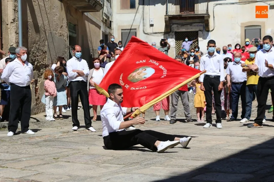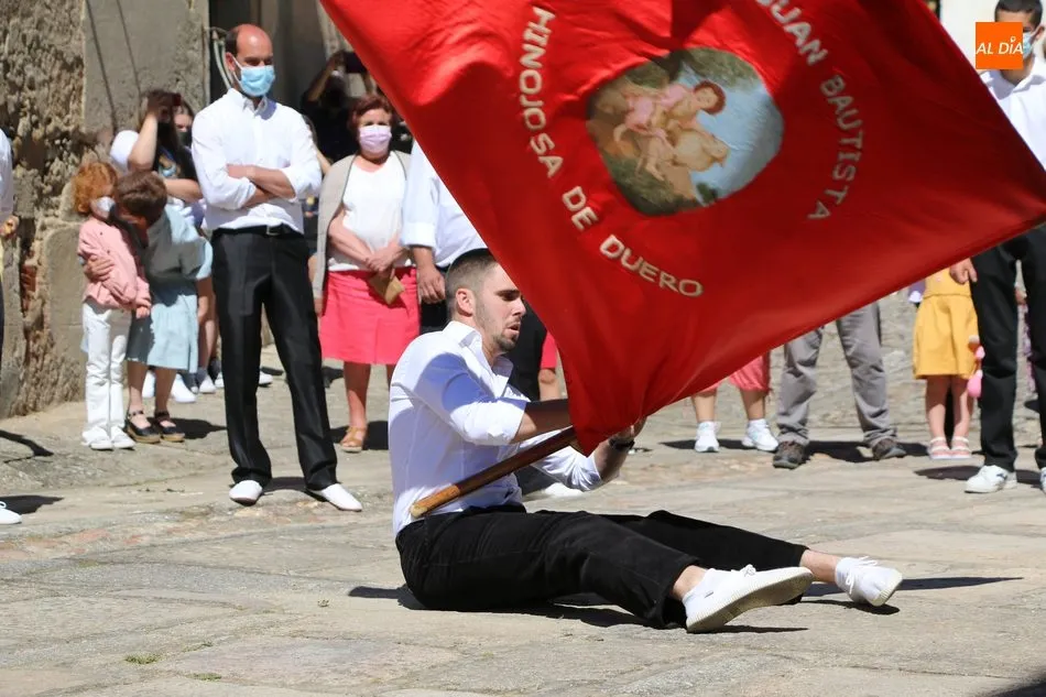 Hinojosa de Duero volvió a vivir el día de San Juan de manera intensa, sin la emoción que imprimen a estas fiestas los festejos taurinos, pero con su principal esencia. El Baile de la bandera hizo vibrar de nuevo a los hinojoseros a las puertas de la iglesia de San Pedro, danza interpretada en esta ocasión por Pedro Méndez Fernández, en el papel de Alabarda, y por Miguel Caballero Galante en el papel de abanderado.