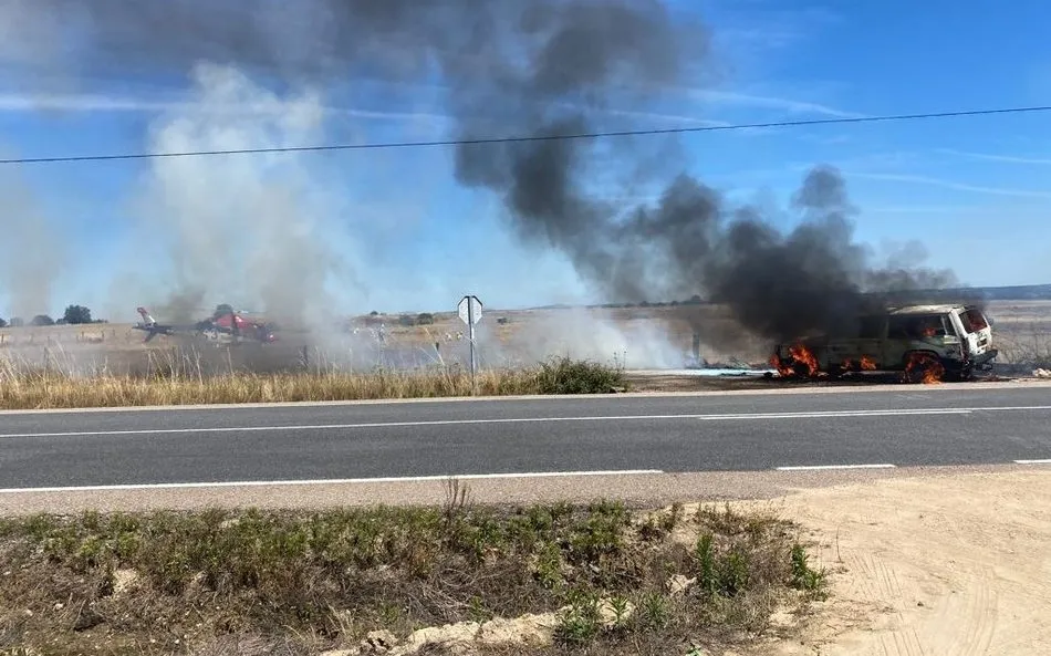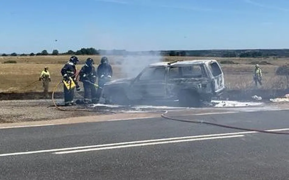 Sobre las 13.00 horas un vehículo que circulaba por la CL-517 echó a arder en las proximidades de la localidad de Cerralbo. Hasta el lugar del siniestro se trasladaron varias unidades del Parque de Bomberos de Lumbrales, y posteriormente intervenía un helicóptero tras que el incendio se convirtiera en forestal.