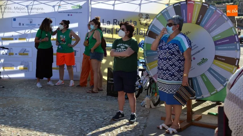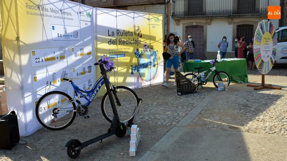 Ya por la tarde, dirigidos por los monitores del Taller de Ilusiones, niños, jóvenes y adultos participaron en el concurso, que se inició con el lanzamiento de botellas de plástico en un contenedor amarillo. Los participantes que consiguieron encestar más botellas pasaron a la segunda prueba, consistente en hacer girar la ruleta y responder a las preguntas o hacer las pruebas relacionadas con el reciclaje. Entre los jugadores que más pruebas y preguntas acertaron se sortearon varios premios: una bicicleta, un patinete, un juego de madera y 10 cuentos para los niños, y un patinete, una bicicleta, una escapada rural y 10 kit de cultivo ecológico para los participantes en la categoría de adultos.