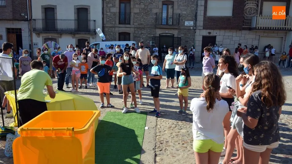 Vecinos de todas las edades se dieron cita en el ágora para participar o ser espectadores de este juego que se estrenaba en Hinojosa y que está promovido por La Diputación Provincial y Ecoembes con el objetivo principal de concienciar a la población de la provincia de la necesidad de reciclar y reutilizar con el fin de contribuir a preservar el medio ambiente y nuestro entorno.