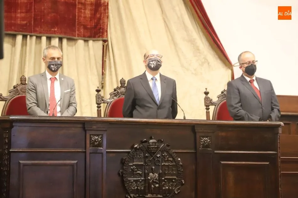 El rector, Ricardo Rivero, presidió la ceremonia de entrega de distinciones celebrada en el Paraninfo de las Escuelas Mayores en un acto en el que estuvo acompañado por David Díez Martín, vicerrector de Ordenación Académica y Profesorado; Celia Aramburu Sánchez, vicerrectora de Estudiantes; José Miguel Mateos Roco, vicerrector de Investigación y Transferencia; y Mª José García Barrado, secretaria General de la Universidad, ente otras autoridades académicas