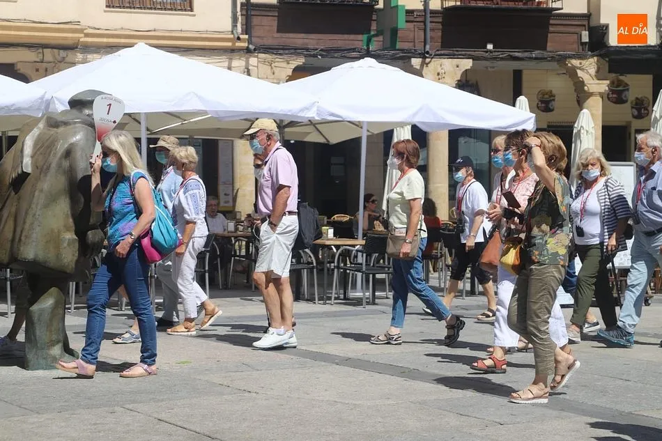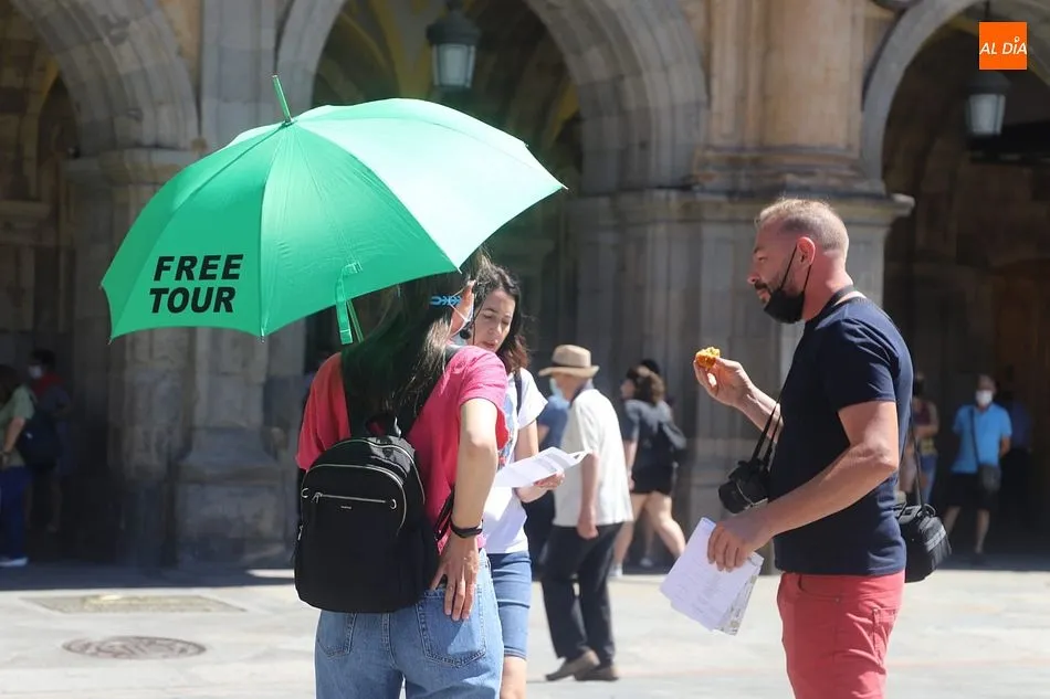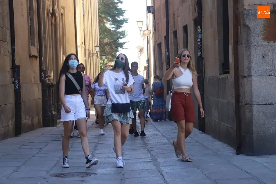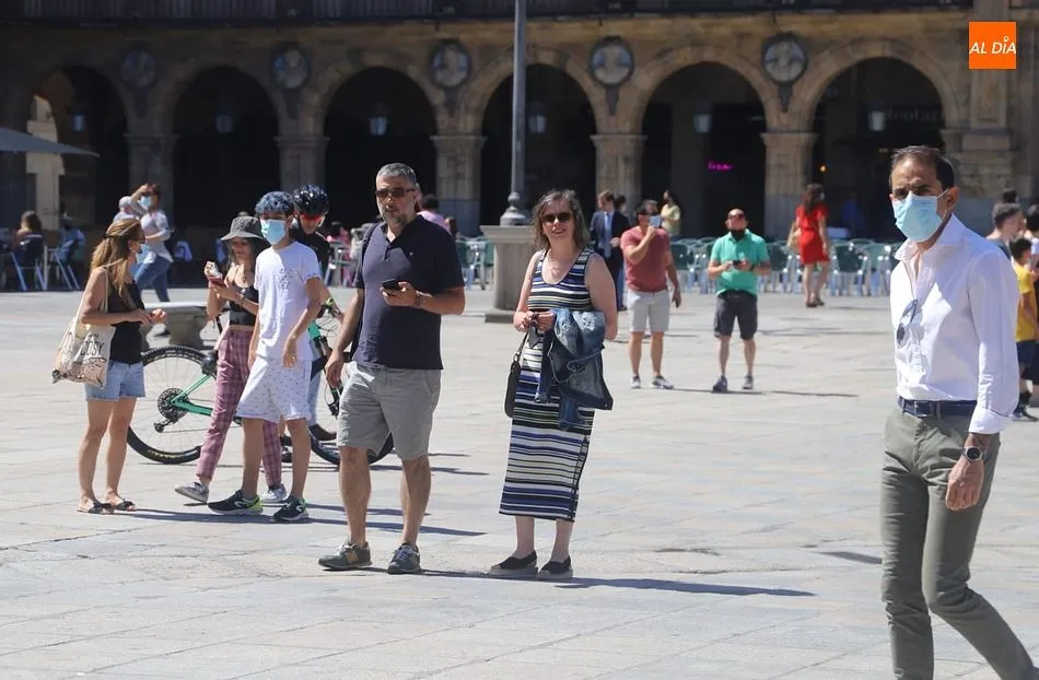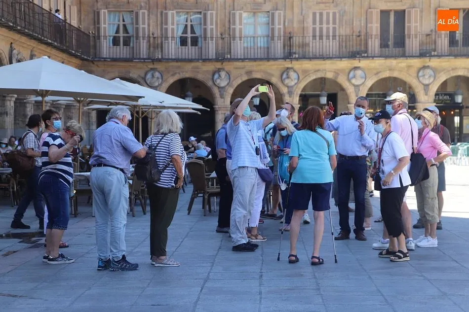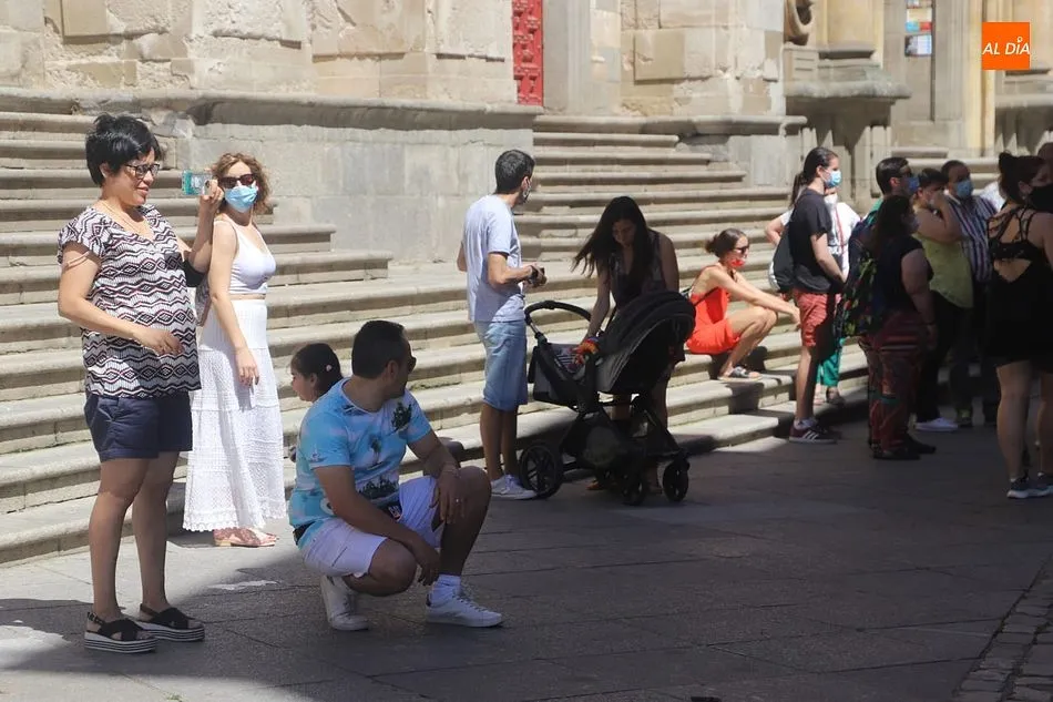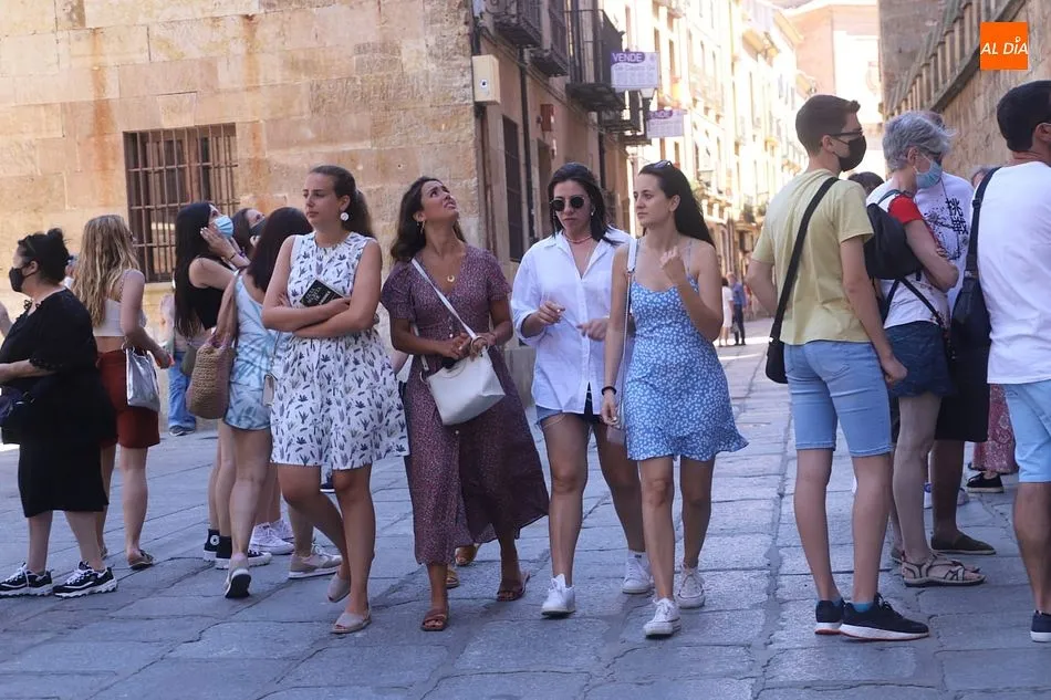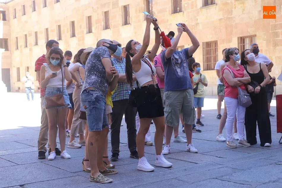 El buen tiempo, con cielos despejados y temperaturas hoy de hasta 31 grados, tras más de una semana de tormentas y fuertes vientos, está favoreciendo la llegada de más turistas a Salamanca, que aprovechan el fin de semana para visitar la ciudad.
