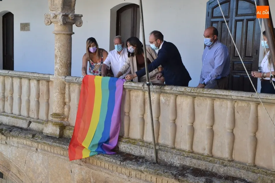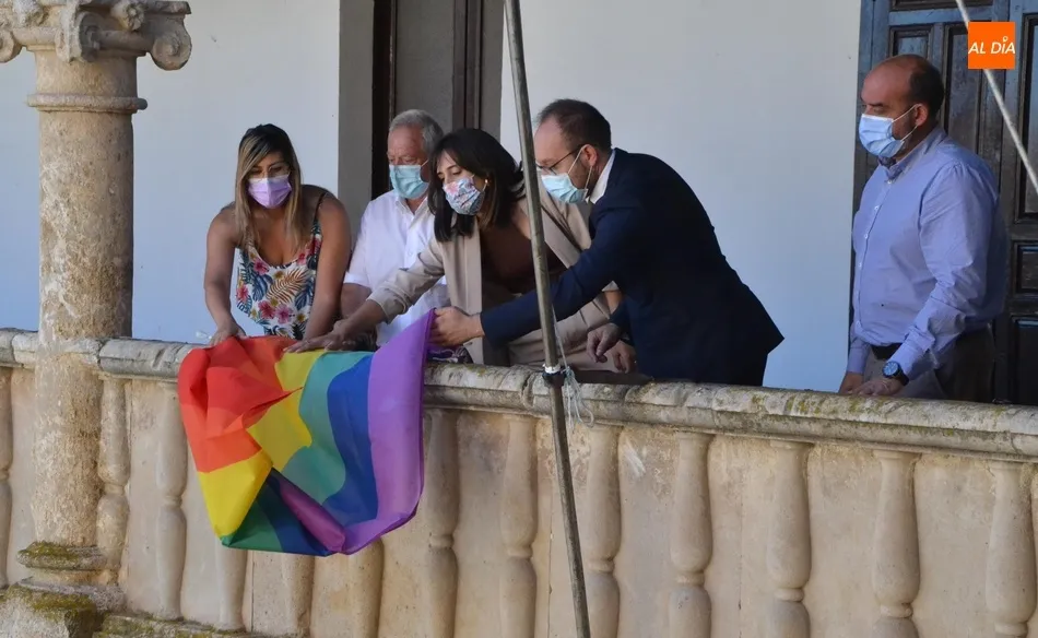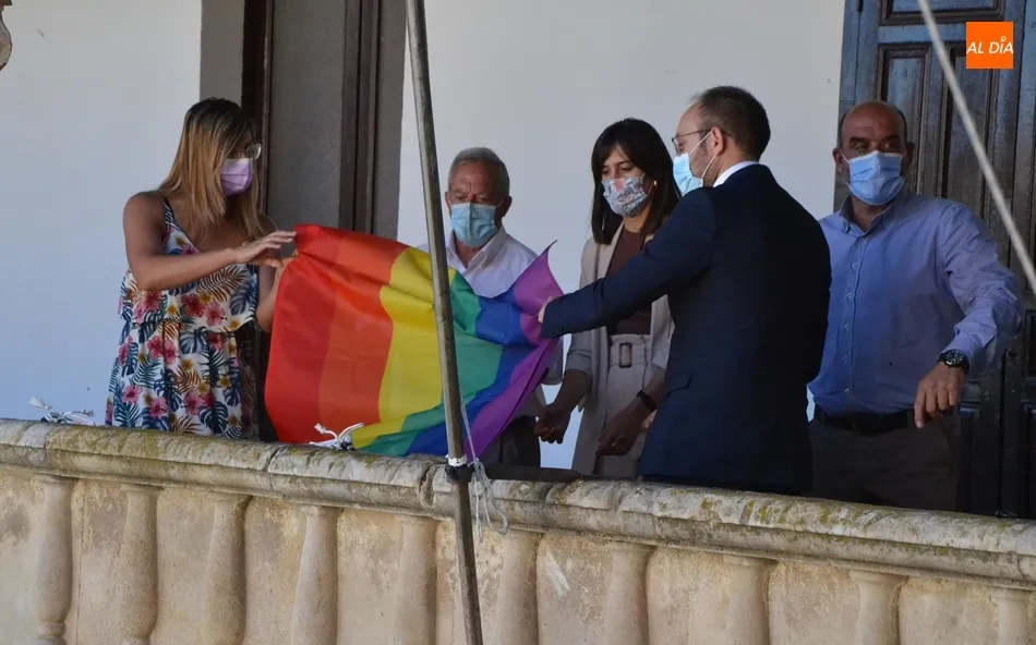 El despliegue de la bandera arcoíris por 7º año consecutivo en la Casa Consistorial mirobrigense fue realizado por el alcalde Marcos Iglesias y los concejales Ramón Sastre, José Manuel Jerez, Laura Vicente, Davinia Montero y Soraya Mangas, tras la lectura por parte de la delegada de Igualdad de Servicios Sociales, Davinia Montero, de un manifiesto en el que expuso que el Ayuntamiento se suma esta jornada ?al orgullo de conocer a personas que no comparten nuestra tendencia sexual y el tiempo les ha señalado como diferentes?.