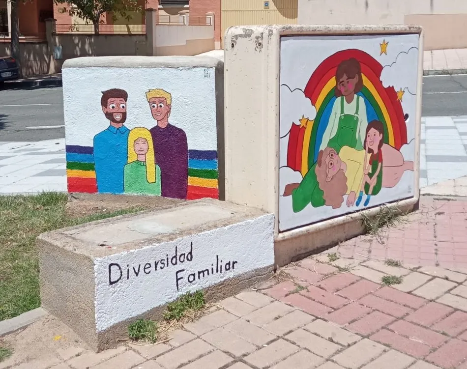 Nuevos murales sobre diversidad familiar en la plaza del barrio de Huerta Otea