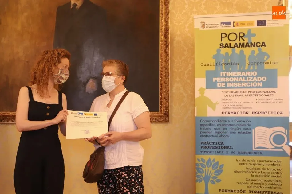 La concejala de Familia e Igualdad de Oportunidades, Ana Suárez Otero, ha entregado los certificados de aprovechamiento del itinerario formativo ?Maleta de recuerdos: trabajo con personas con alzheimer y demencias?. Se trata de una las acciones que contempla el Proyecto Por + Salamanca, cofinanciado por el Fondo Social Europeo y el Ayuntamiento de Salamanca, cuya finalidad es la orientación, formación y cualificación profesional, a través de itinerarios individualizados de inserción y destinado a personas pertenecientes a colectivos con dificultades de inserción laboral.