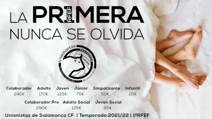 Unionistas de Salamanca CF arranca su campaña de socios de cara a la temporada 2021-2022, que está enfocada en la ?primera vez?: primera vez en la nueva categoría, 1ª RFEF; primera vez en el estadio Reina Sofía, o incluso primera vez viendo a Unionistas, porque uno de los objetivos marcados por el club para esta nueva temporada es el de expandirse y llegar a nuevos sectores de Salamanca y provincia.Unionistas quiere aprovechar el ascenso para captar nuevos socios e incrementar su masa social | Imagen 1