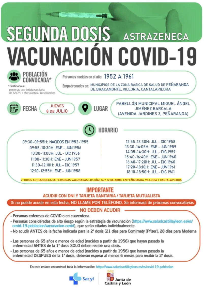 segunda dosis de la vacuna AstraZeneca para los nacidos de 1952 a 1961 y que