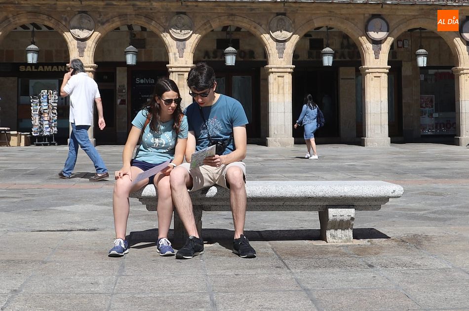 Tal y como estaba previsto, el fin de semana con cielos despejados y buenas temperaturas está animando al público a llenar las calles de Salamanca. De nuevo el centro histórico con la Plaza Mayor como centro neurálgico, es la parte que concentra más visitantes, tanto turistas para visitar la gran oferta cultural de la ciudad, como clientes de hostelería.