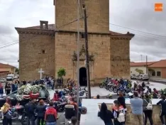 Cantalpino ha despedido hoy a Alfredo Alonso Ruiz en la iglesia de San Pedro Apóstol. Numerosas personas ha asistido a esta despedida, entre ellas muchos de sus compañeros de afición motera que han querido mostrar su cariño llevando sus motos hasta la entrada del templo.