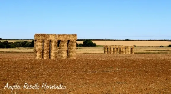 Estas pacas, tan armoniosamente colocadas, en medio de un amarillo pleno, podrían ser la expresión de un panteón agrícola.