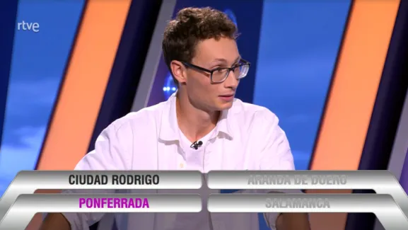 En este caso, junto a Ciudad Rodrigo, se propusieron como respuestas Ponferrada, Aranda de Duero y Salamanca, descartando la primera de las concursantes, sin tenerlo nada claro, Salamanca (?creo que no está? ahí, según dijo). A continuación, otro concursante descartó Aranda de Duero, con la base de que ha ido bastante a comer allí y no le suena que esté. El tercer concursante tampoco lo tenía nada claro (ya que pidió ?disculpas? a sus compañeros, que no ganarían nada en caso de fallar él), pero descartó Ponferrada, con lo cual acertó dejando como respuesta Ciudad Rodrigo.