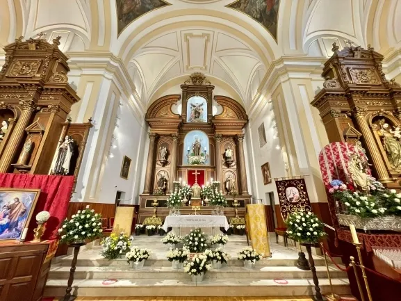 El millar de rosas donadas permanecen en la iglesia de San Juan de la Cruz de Alba de Tormes junto a los dos imágenes procesionales de la Virgen del Carmen, que permanecen expuestas en el templo para su veneración debido a la imposibilidad de celebrar las tradicionales procesionales que deberían tener lugar este viernes con motivo de la Solemnidad de la Virgen del Carmen.
