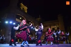 El Festival Hispano Luso de Folklore de Ciudad Rodrigo cambió el tono en su cita de la noche del viernes, ya que tras tres conciertos puros en las tres veladas precedentes, llegó la hora del baile, gracias a la Asociación Cacereña de Folklore ?El Redoble?. Con casi cuatro décadas de trayectoria a sus espaldas, se desplazaron a Ciudad Rodrigo un alto número de sus integrantes para mostrar los bailes de distintos rincones de la provincia cacereña, todo ello con la vestimenta de cada zona, lo que llamó bastante la atención del público congregado en el ágora mirobrigense, que fue mucho más numeroso que en las noches anteriores, ocupando todas las sillas desplegadas, incluidas por supuesto las de las terrazas.