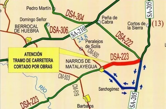 Con motivo de la ejecución de los trabajos de conservación de la carretera DSA-223, entre la SA-205 y Narros de Matalayegua, promovidas por la Diputación de Salamanca dentro de los planes de inversión de carreteras, dicho tramo de carretera permanecerá cerrado al tráfico de vehículos del 20 de julio al 12 de noviembre de 2021.