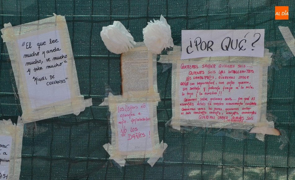 En torno a la propia Bibliocaseta, horas después de ocurrir el incendio en la madrugada del jueves al viernes, fue rodeada con vallas para evitar que se acercase nadie, siendo además tapadas esas vallas con una tela verde. En una lateral de esta tela han sido colocados varios textos, entre ellos frases de Miguel de Cervantes o un texto en el que alguien se pregunta '¿Por qué?' se ha quemado este espacio, además de querer saber "quienes sois l@s intolerantes, l@s gamberr@s". En la mañana del sábado todavía no habían sido retirados los restos de los libros destruidos, que permanecen rodeando la Bibliocaseta.