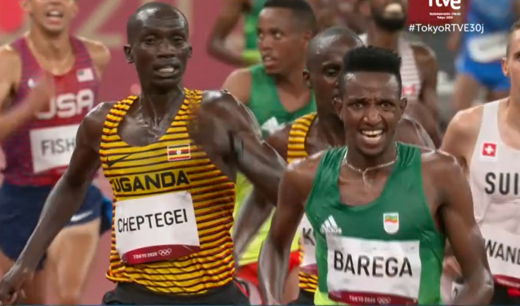 8) En la 1ª final, el 10.000 masculino, los tres primeros, un etíope ?Barega- y dos ugandeses, llegaron en ¡66 centésimas!