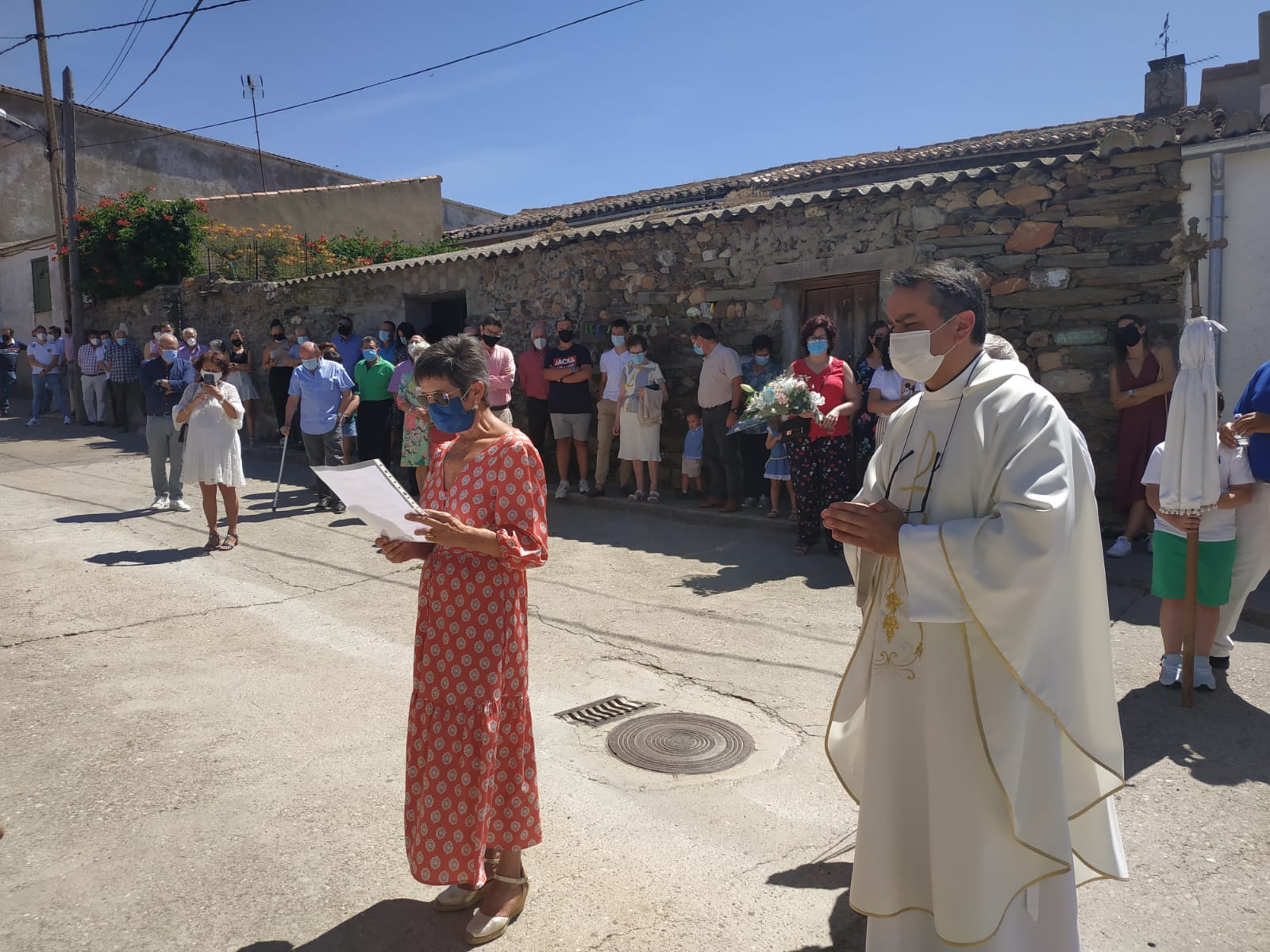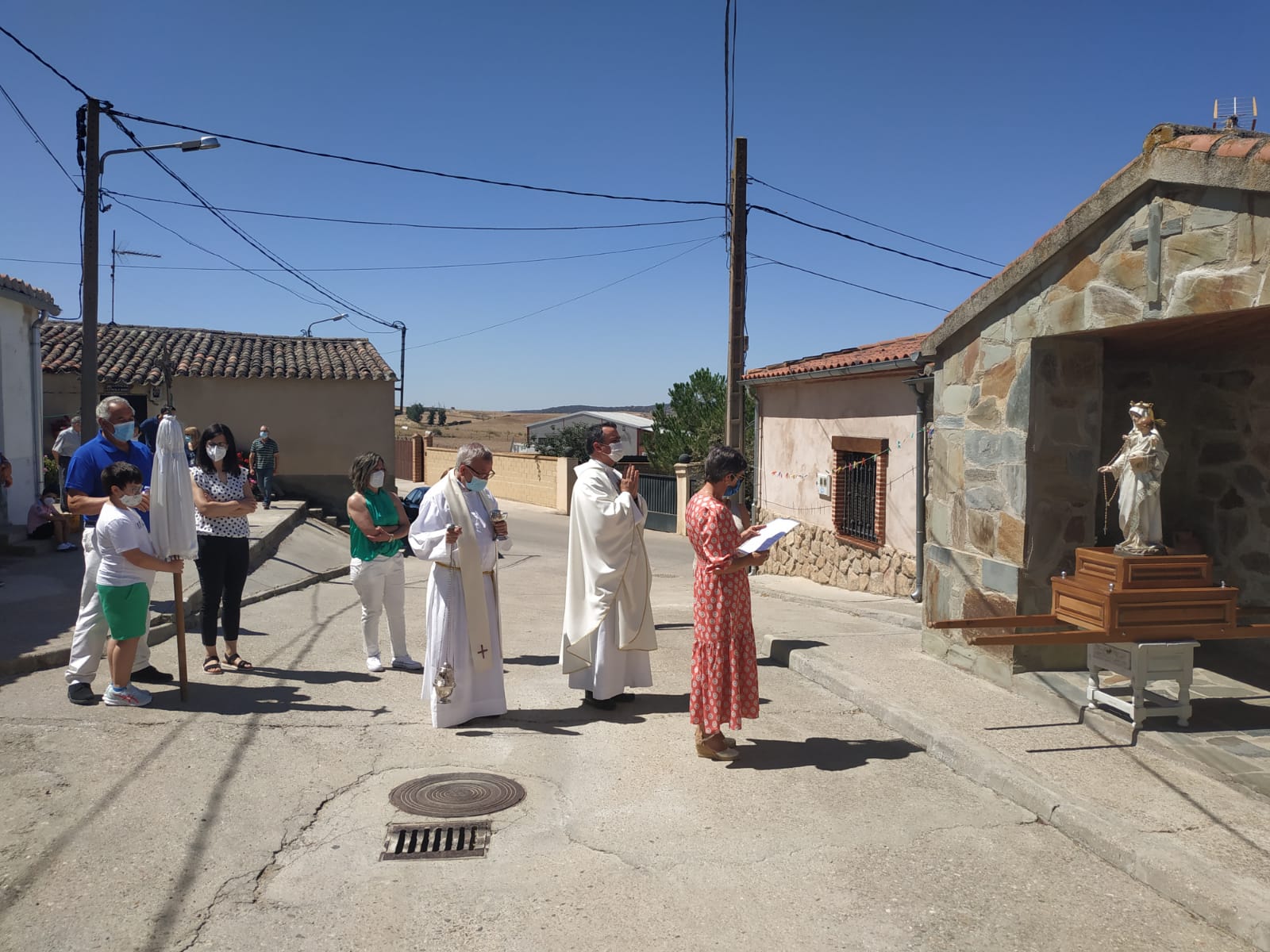 Habitantes y descendientes del municipio salmantino acompañaron la imagen en la mañana de este jueves respetando las medidas de seguridad