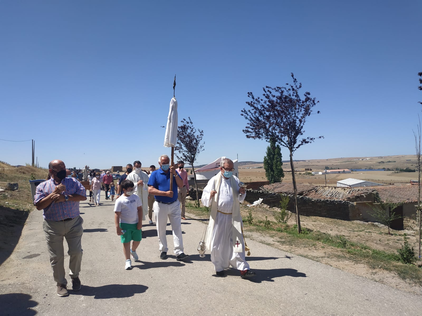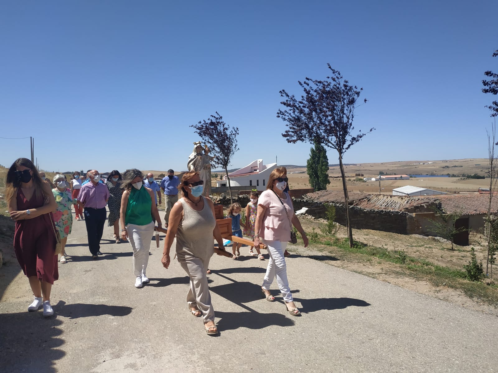 Amatos de Alba celebró este jueves la tradicional procesión de Nuestra Señora de las Nieves bajo la atenta mirada de sus vecinos y de descendientes del municipio salmantino que acompañaron la imagen respetando en todo momento las medidas de seguridad impuestas.