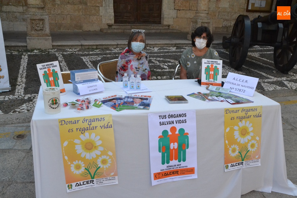Como ya ha ocurrido en algún año anterior, la Asociación para la Lucha contra las Enfermedades de Riñón (ALCER) escogió la mañana del sábado de la Feria de Teatro de Ciudad Rodrigo para instalar una mesa en la Plaza Mayor, a los pies de la Casa Consistorial mirobrigense. Esa mesa tuvo una doble finalidad: por un lado, informar sobre la propia Asociación y sus fines; y por otro lado, recaudar fondos, mediante la recogida directa de donativos en huchas; la venta de cajas de mascarillas y botes de gel hidroalcohólico, y la venta de Lotería de Navidad con recargo (las participaciones tenían un precio de 3?, de los cuales 0,50? son a modo de donativo para la Asociación).