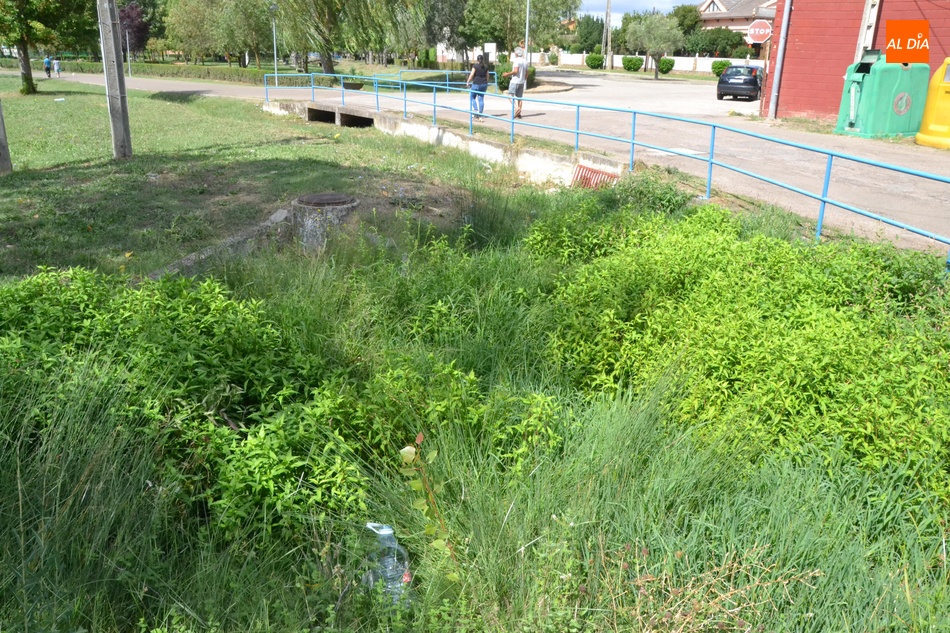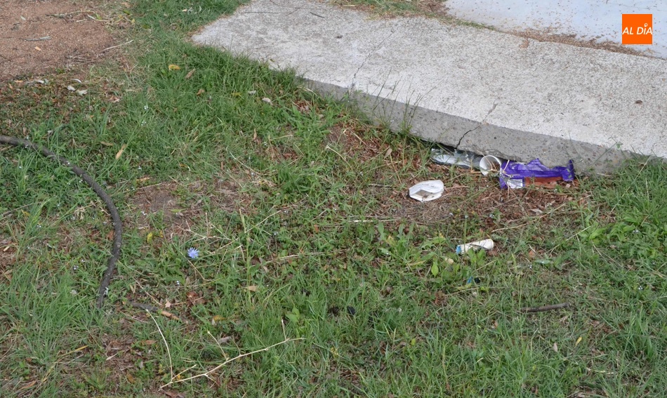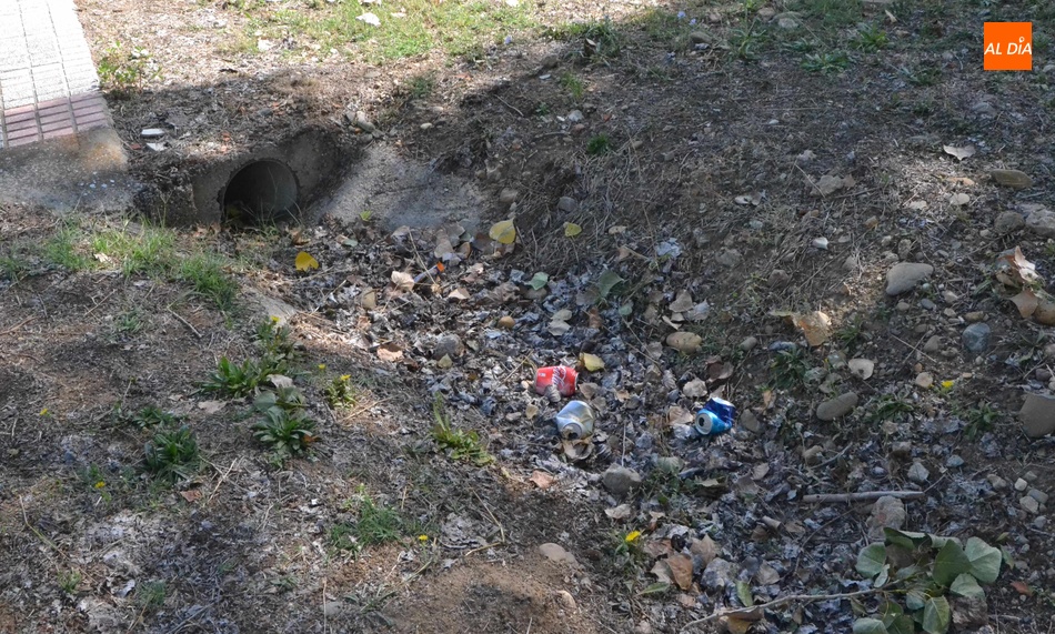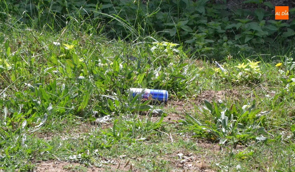 Esa imagen se repite desde ese punto en dirección al Colegio El Puente, pudiéndose ver en la cuneta botellines de cerveza vacíos, envoltorios de helados, botellas vacías de plástico e incluso la bolsa de una zapatería. Mientras, en la otra dirección, hacia la calleja que lleva al río, se pueden ver también múltiples latas y botellas (algunas de ellas parece que 'con solera'), e incluso una garrafa de agua vacía enredada en lo verde.