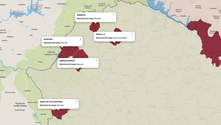 También en la zona de salud de Aldeadávila se mantiene algún positivo en las localidades de Vilvestre y Barruecopardo, mientras que en la de Vitigudino únicamente aparece en el mapa de riesgo La Vídola, y en la de Lumbrales, Ahigal de los Aceiteros, todos ellos casos registrados en la última semana.