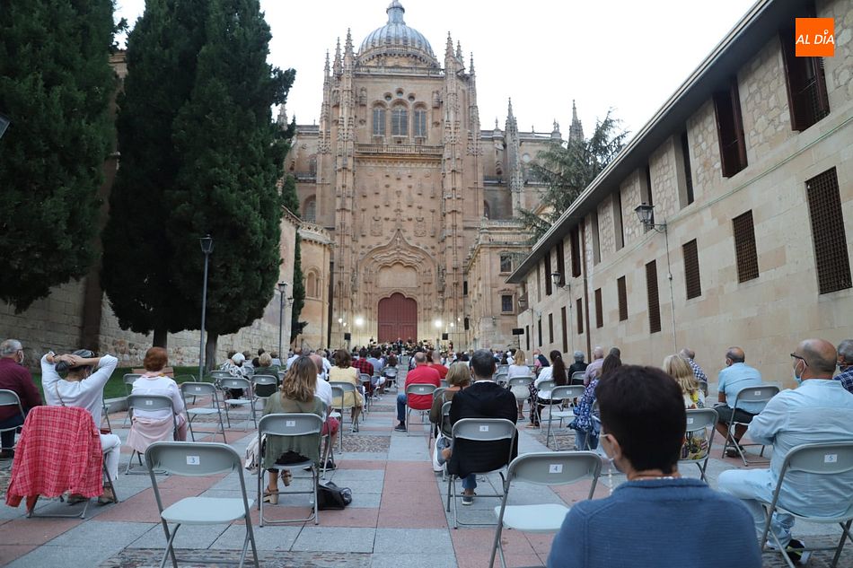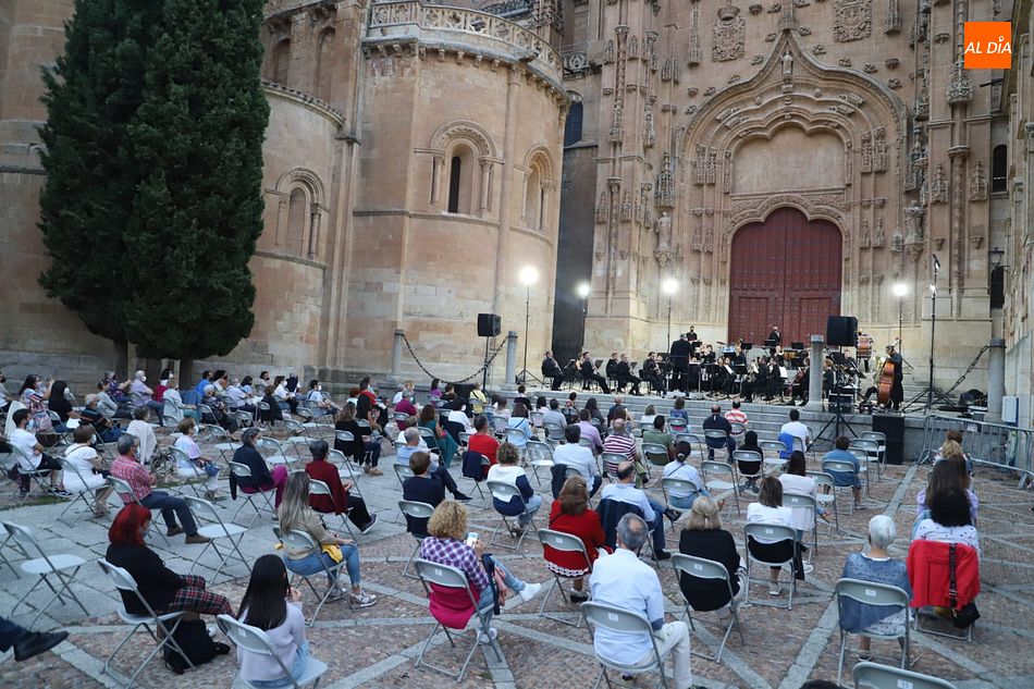 La música pop ha sido la protagonista esta tarde en el Patio Chico con un concierto ofrecido por la Banda Municipal de Música. El conocido espacio al pie de la Catedral de Salamanca ha contado con una selección de temas populares que han sido grandes éxitos en la historia de la música gracias a la interpretación de la Banda dirigida por Mario Vercher. El público disfrutó de melodías de grupos tan relevantes como Abba, Santana y Queen en una nueva propuesta de la programación festiva de Salamanca.