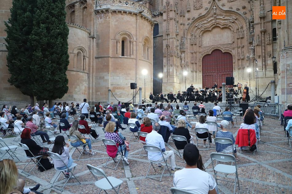 La música pop ha sido la protagonista esta tarde en el Patio Chico con un concierto ofrecido por la Banda Municipal de Música. El conocido espacio al pie de la Catedral de Salamanca ha contado con una selección de temas populares que han sido grandes éxitos en la historia de la música gracias a la interpretación de la Banda dirigida por Mario Vercher. El público disfrutó de melodías de grupos tan relevantes como Abba, Santana y Queen en una nueva propuesta de la programación festiva de Salamanca.