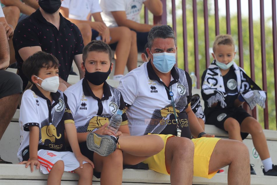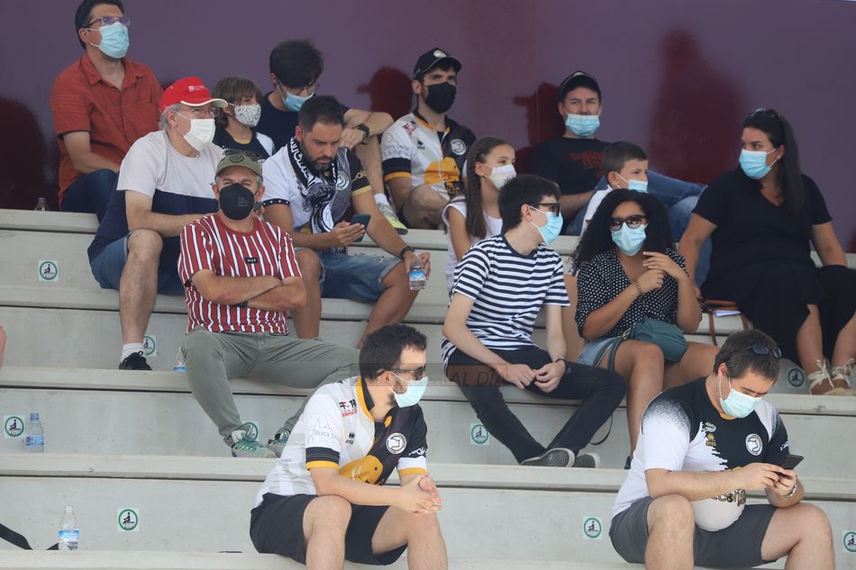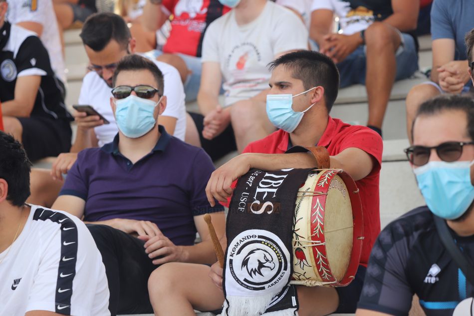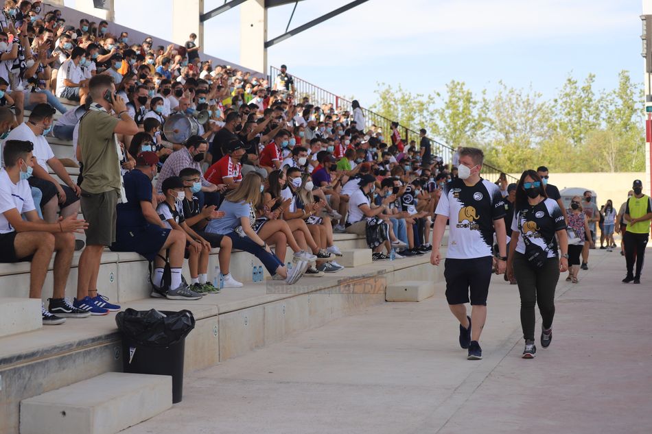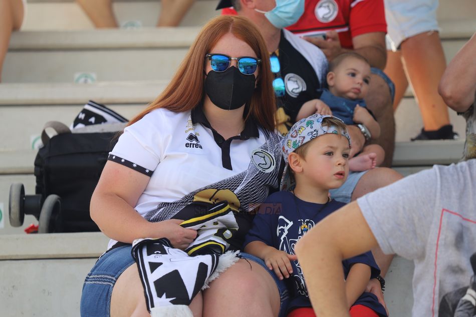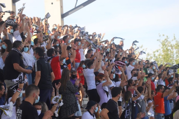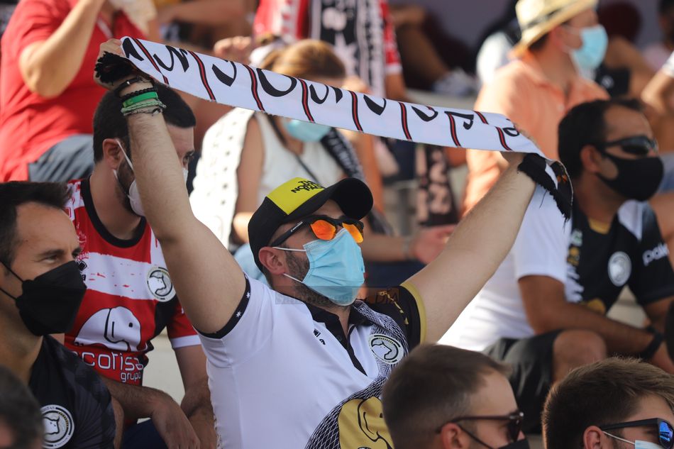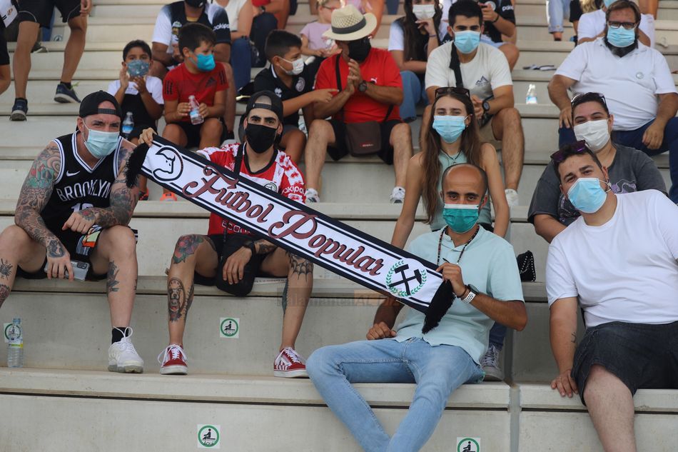 La grada de animación de Unionistas ya se dejó sentir en el estadio, puesto que se ubicó en el Fondo Oeste del Reina Sofía y lució un gran aspecto en el duelo con el Extremadura, aunque las restricciones sanitarias existentes por la pandemia del coronavirus aún no dejaron verla en todo su esplendor.