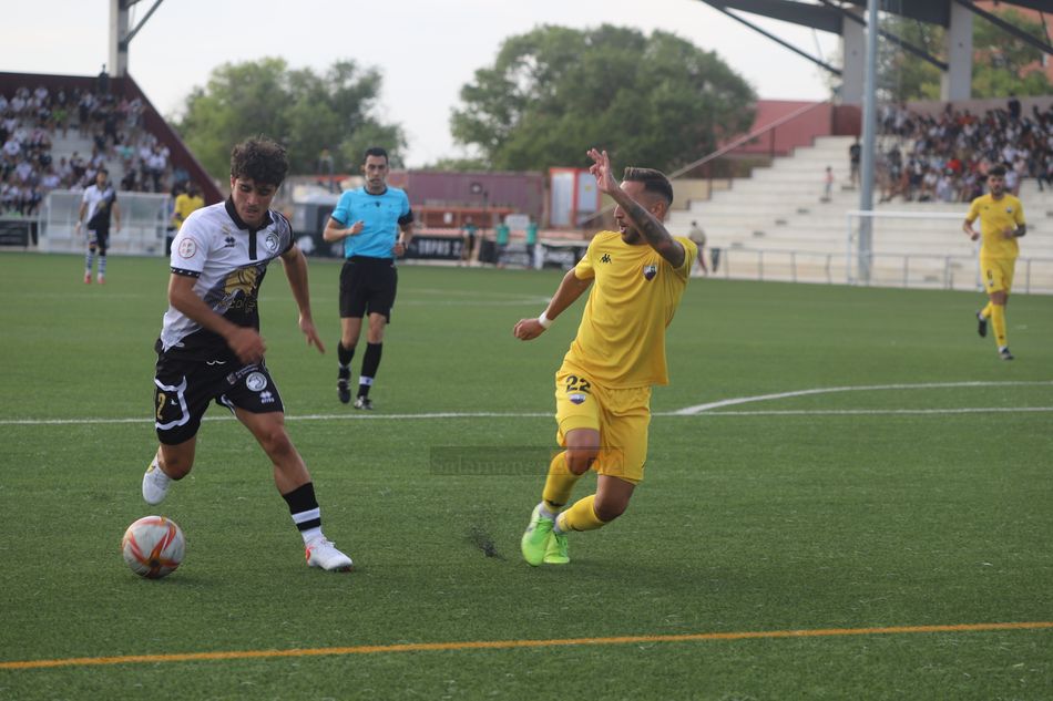 Los primeros compases de la contienda demostraron una igualdad que poco tardó en romperse al ser un auténtico espejismo. Los locales empezaron a pisar el acelerador y le hicieron un buen destrozo a los de Almendralejo. Así, la conexión Íñigo ? Rayco dejó su primer fruto en el 10', ya que un pase del primero acabó en un gol fantasma del segundo. 1-0. Seis minutos después, misma operación y mismo final. 2-0. Demoledor arranque.