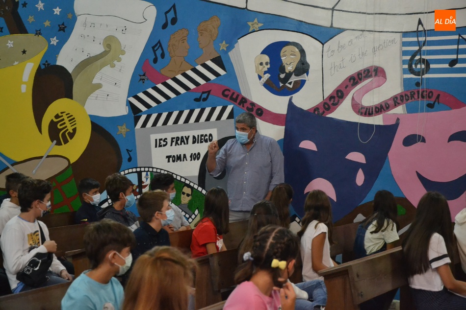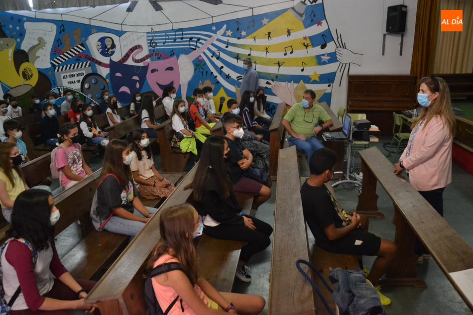 Los institutos de educación secundaria de Ciudad Rodrigo iniciarán su actividad lectiva el próximo miércoles 15 (salvo en el caso de los ciclos formativos, que empezarán en las semanas venideras), lo que hizo que el IES Fray Diego Tadeo desarrollase durante la mañana del lunes su tradicional jornada de acogida a los nuevos alumnos del centro, que tiene como finalidad, como les señaló la directora Pepi Martín Choya, que, antes de que el miércoles llegue el 'mogollón' de todos los alumnos, 'quiten los nervios' que genera el llegar a un sitio nuevo.